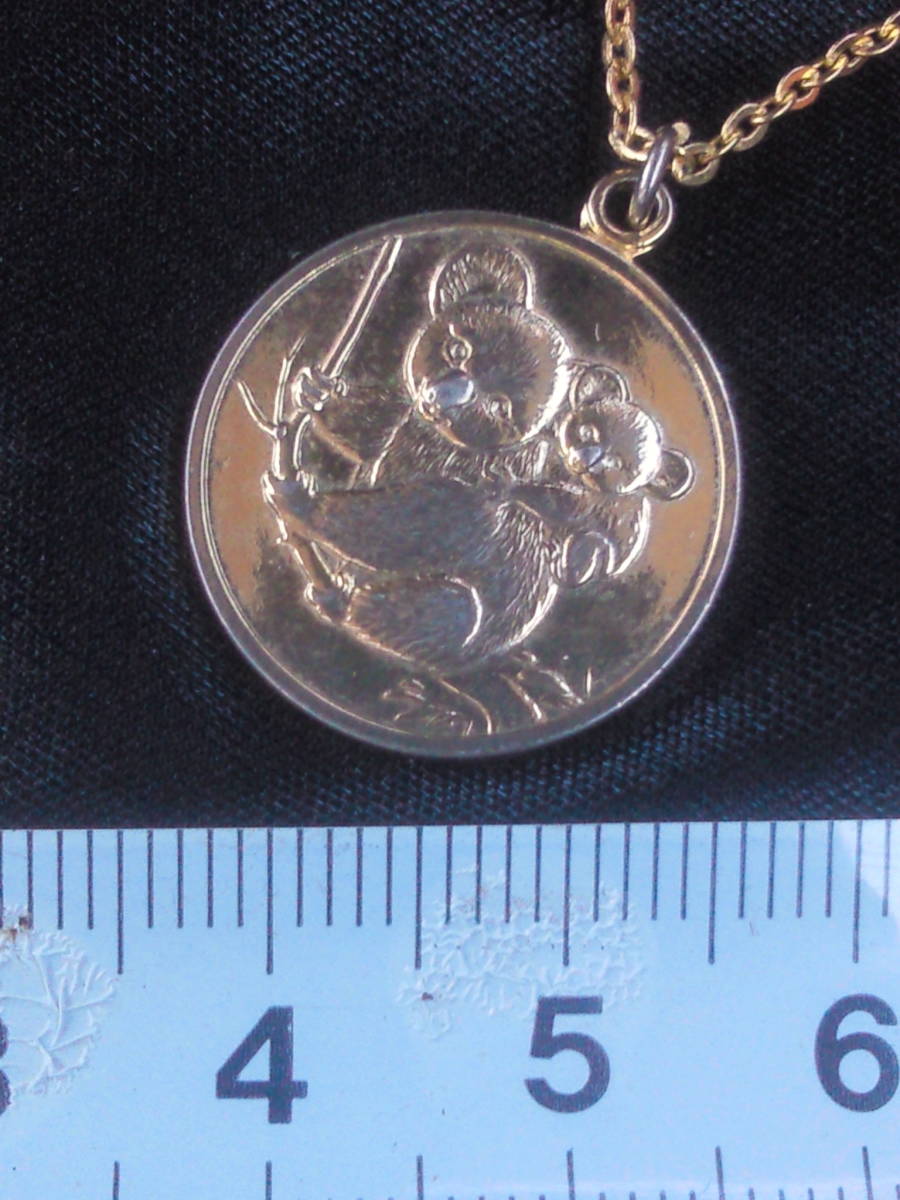 エリザベスコイン金貨風ネックレス●コアラ硬貨コイン●オーストラリア製コインペンダント●ヴィンテージ品アンティークジュエリー送料無料