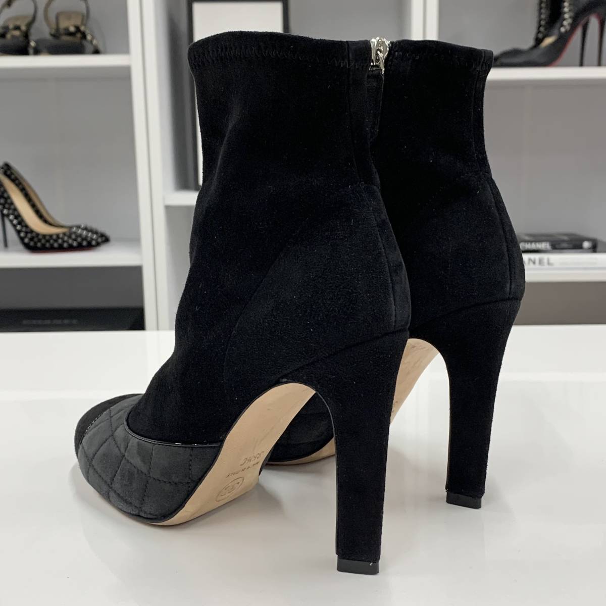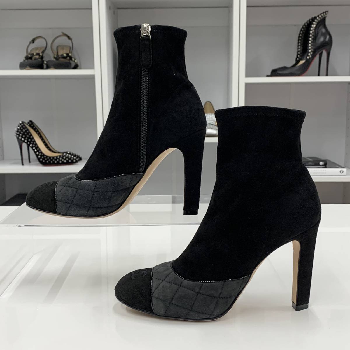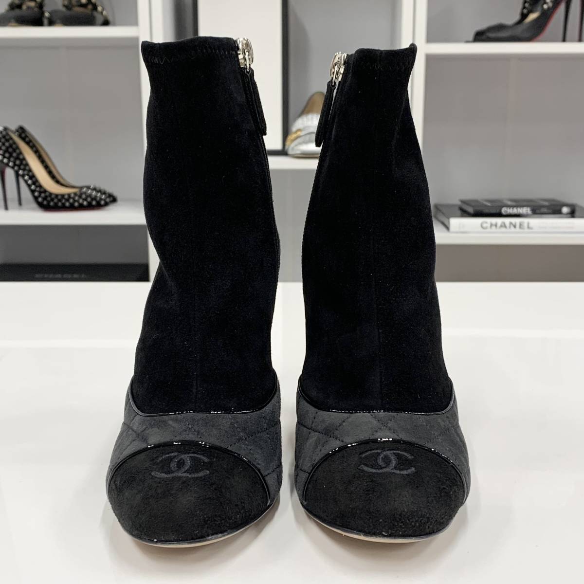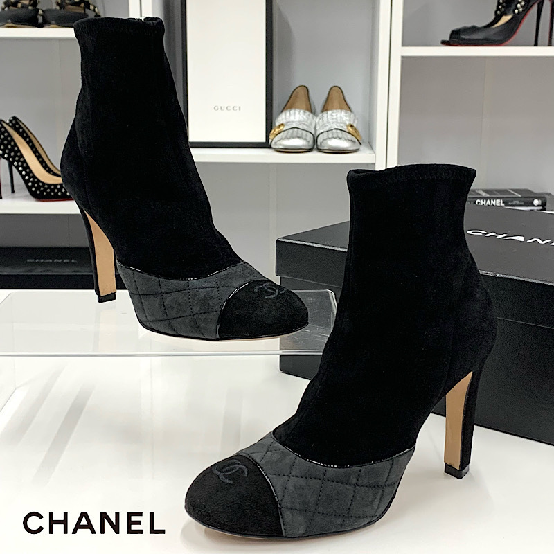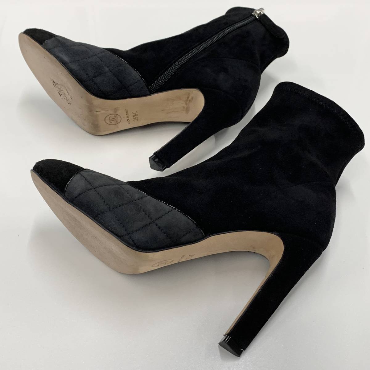 8446 シャネル スエード ココマーク マトラッセ ショートブーツ ブラック