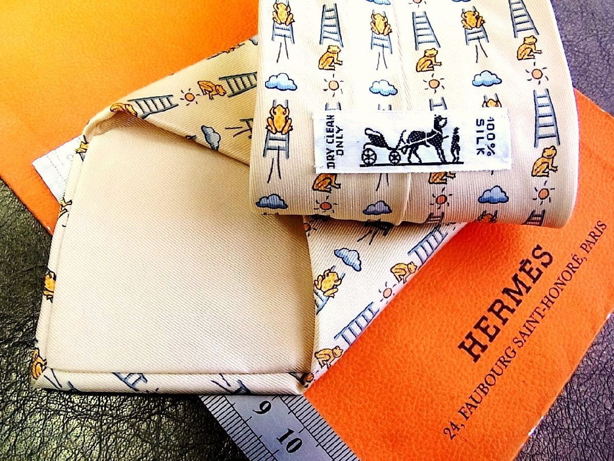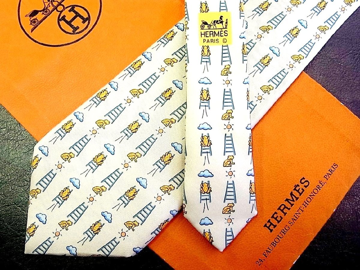 ♪vr0578♪良品♪【HERMES】エルメス【蛙 カエル ハシゴ 雲 太陽 柄】ネクタイ