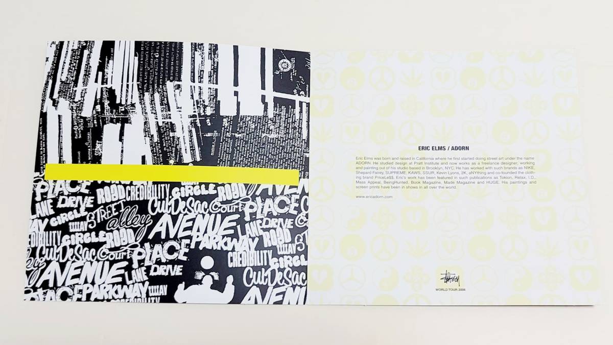 大人気米国ブランド『STUSSY ステューシー』の2006年に世界各国からグラフィックデザイナー、ペインターなど総勢41組のアーティストがデザイン参加したうちの1アイテムであるERIC ELMS エリック・エルムズがデザインしたワールドツアー2006コラボレーション限定Tシャツです。