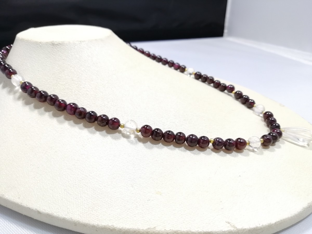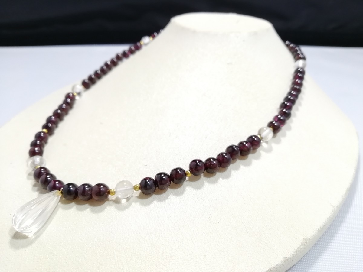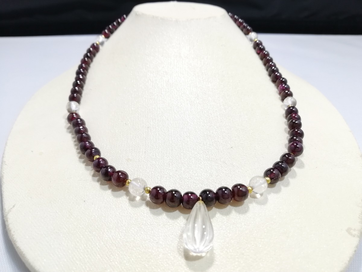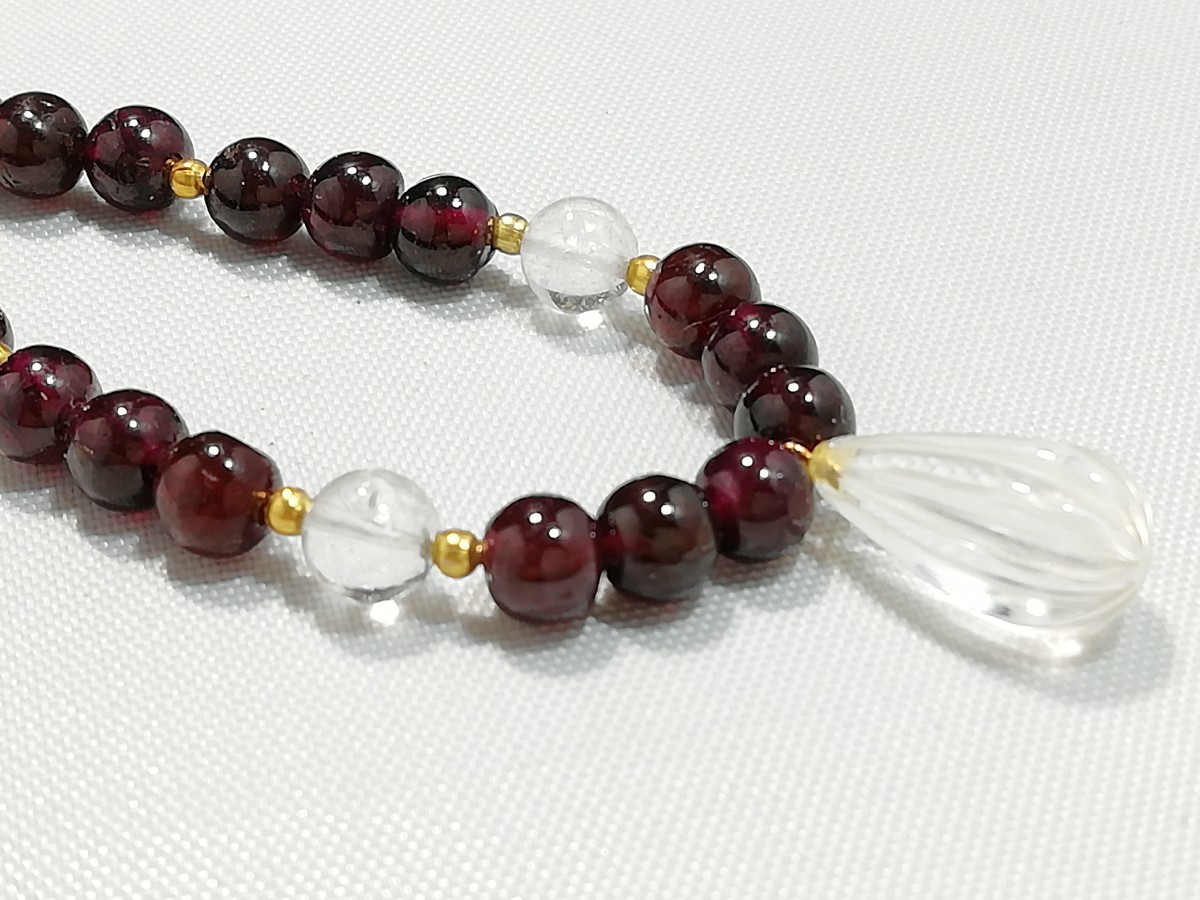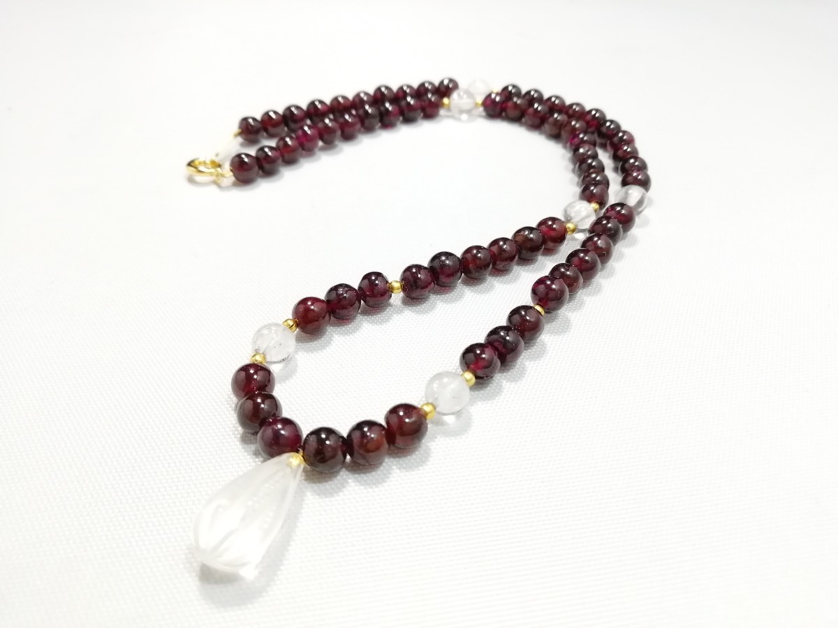 ハイグレード天然大粒ガ−ネット&水晶ペンダントネックレス