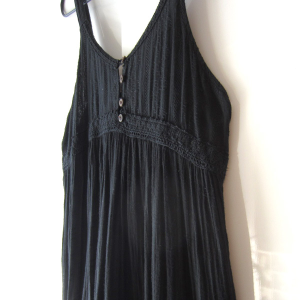 美品 ゆったりサイズ コットン 肩ひもロングワンピース 黒