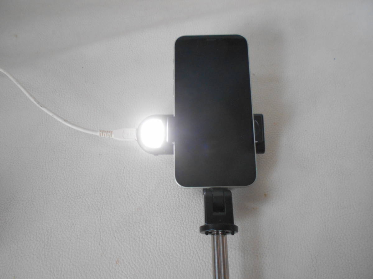 LED HEADLIGHT ヘッドランプ 携帯用 自撮り棒 ユーチューブ ライト リモコン付き タイプC USB 付属 釣り キャンプ 2点セット 中古品