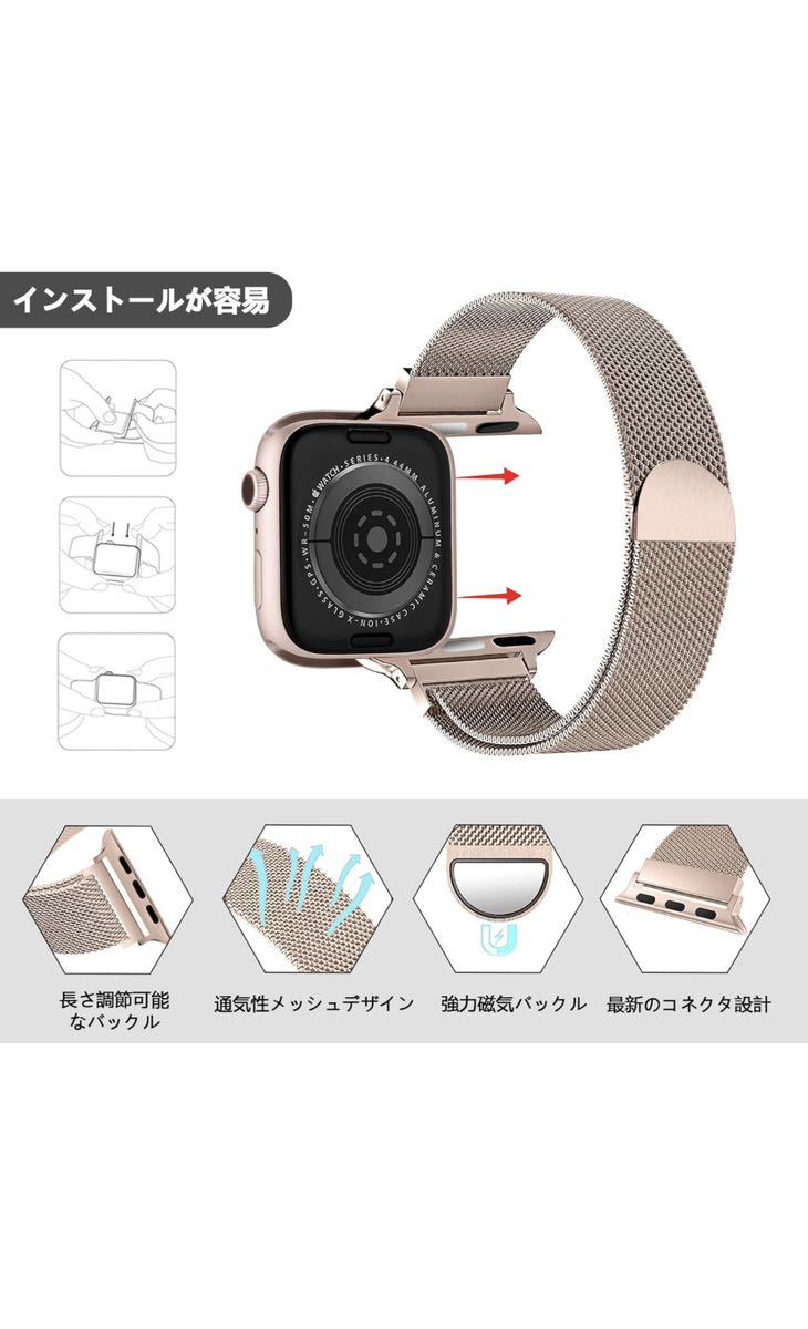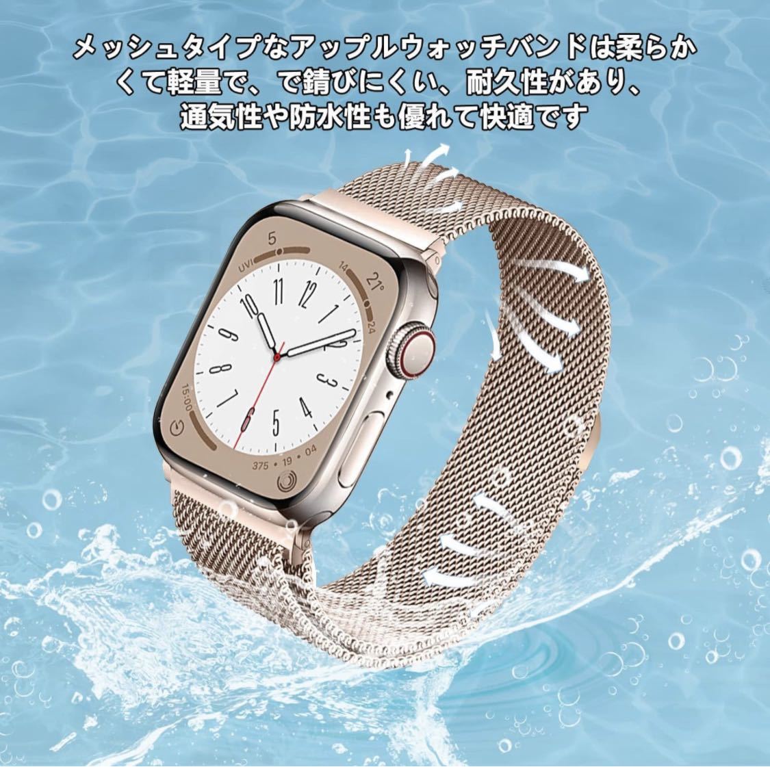 FEEKI コンパチブル Apple Watch バンドコンパチブル アップルウォッチバンド ステンレス留め金製 男女兼用 マグネットクラスプ コンパチブル Apple Watch ベルト 長さ調節 通気 メッシュ ベルト Apple Watch Series (41/40/38mm, シャンパンゴールド)