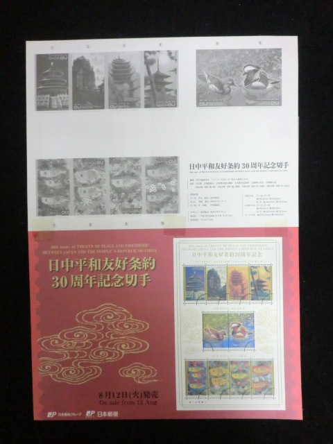 | ◎特殊切手2008「日中平和友好条約30周年記念切手(日本・中国)」平成20年 額面800円☆n5 | ||