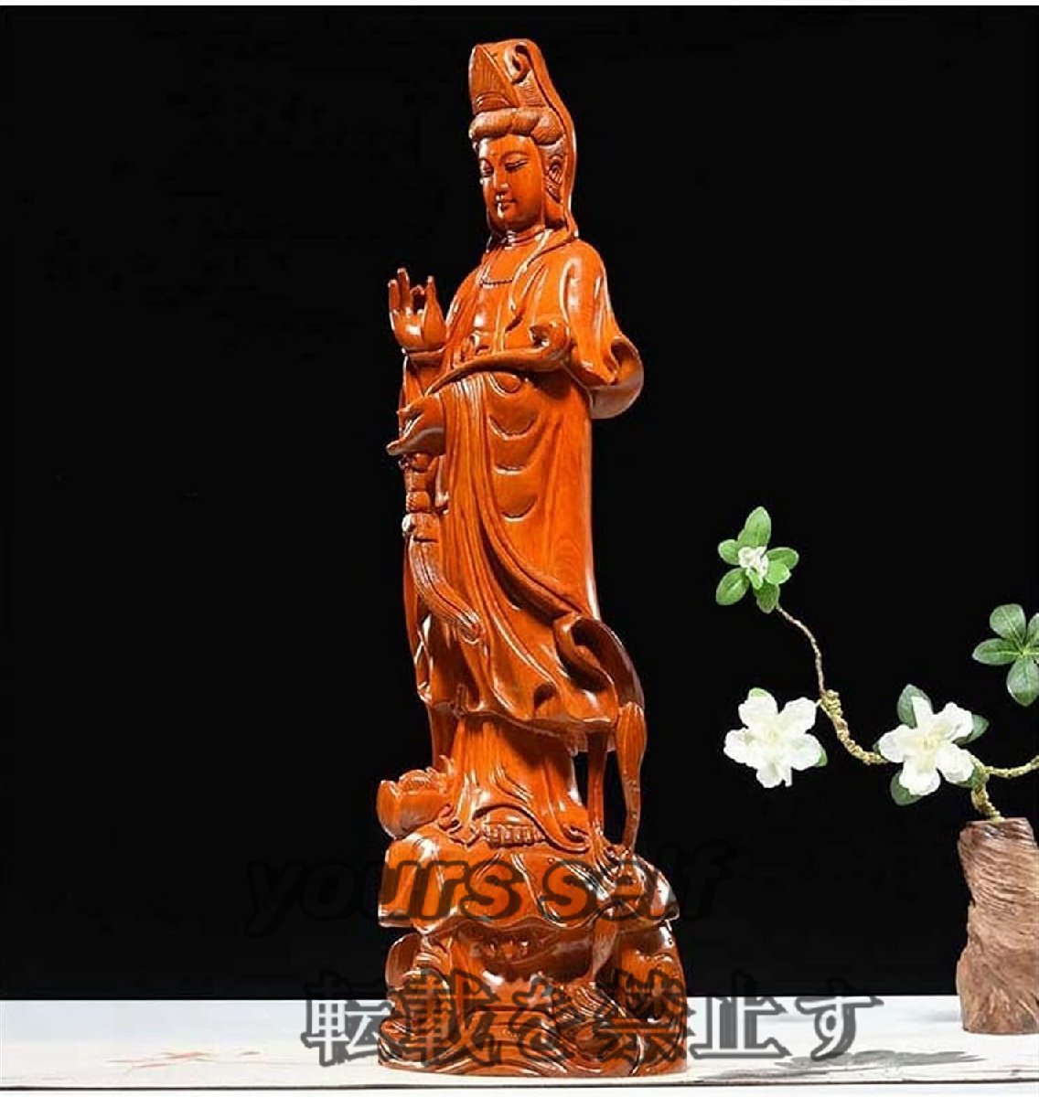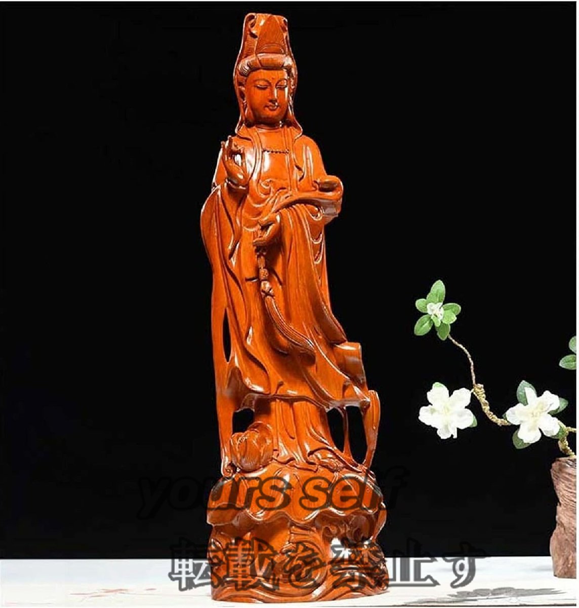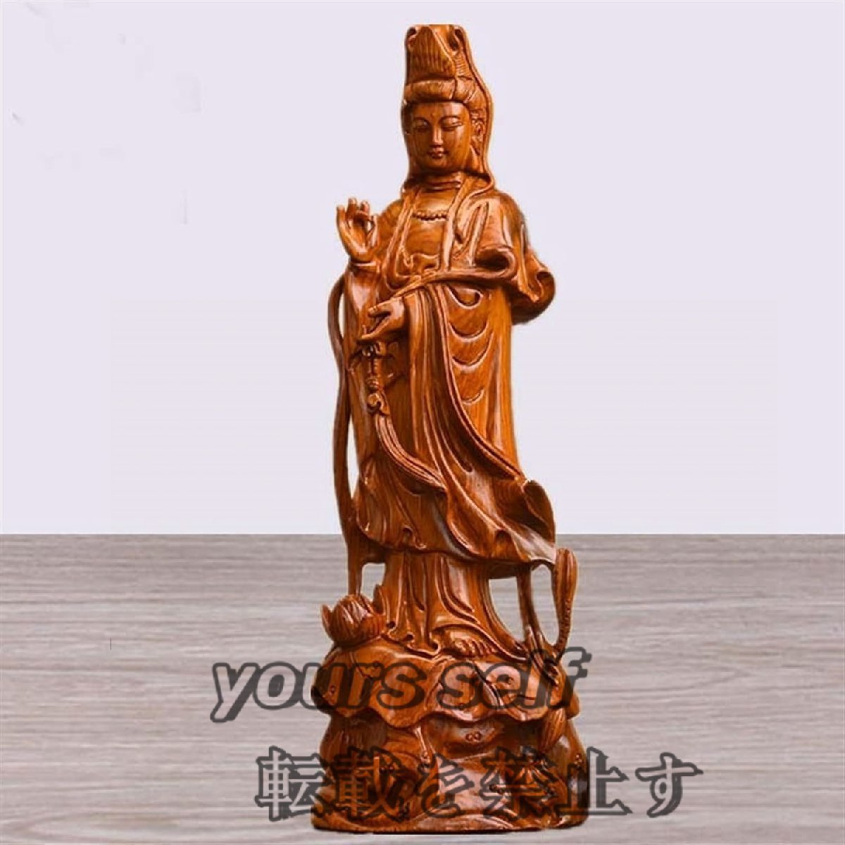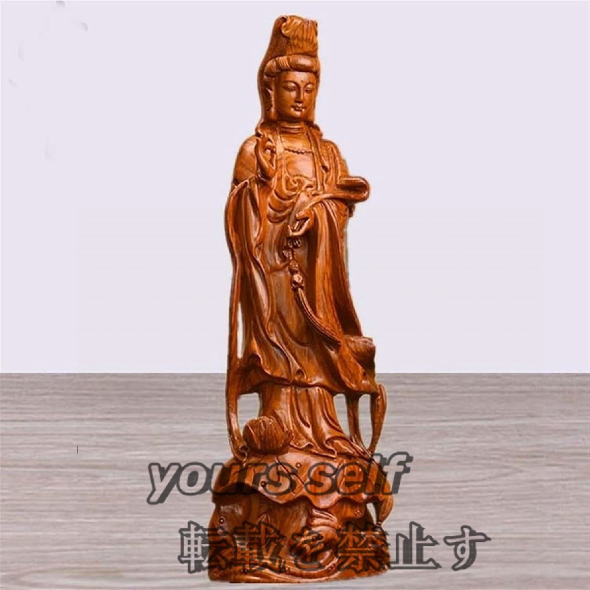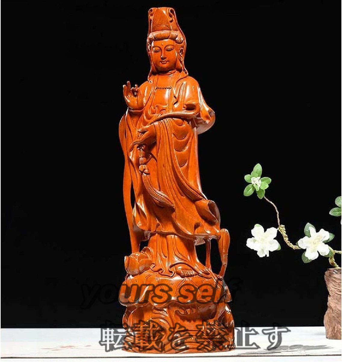 大好評 ◆仏教美術 木彫仏像 精密細工 木彫り 花梨木 天然木 置物 観音菩薩像 仏像 高さ30cm
