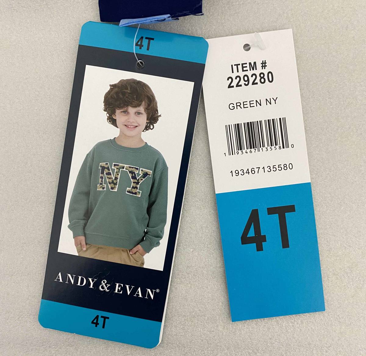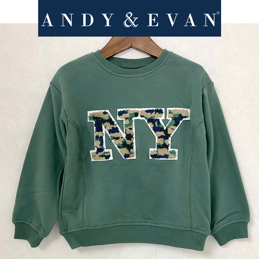 新品 110 ★ コストコ ANDY&EVAN キッズ トレーナー グリーン NY