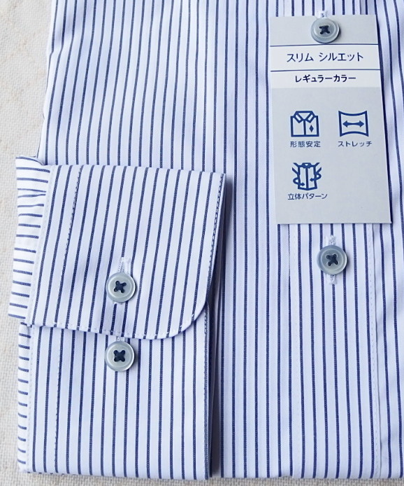 紙タグには「レギュラーカラー」とありますが、当方の私見ではワイドカラーです。
