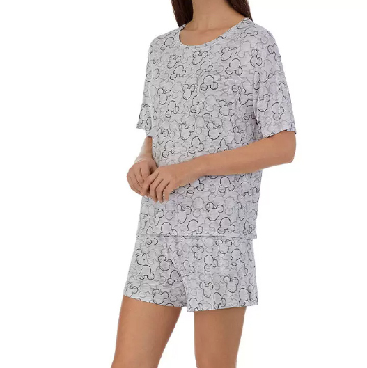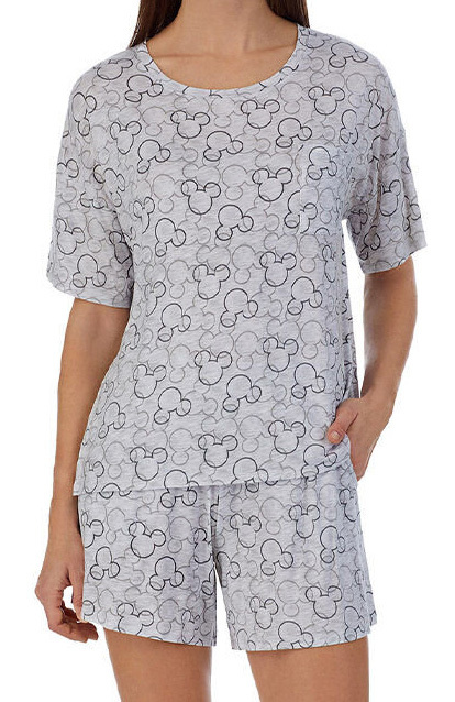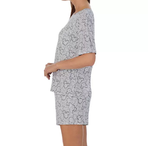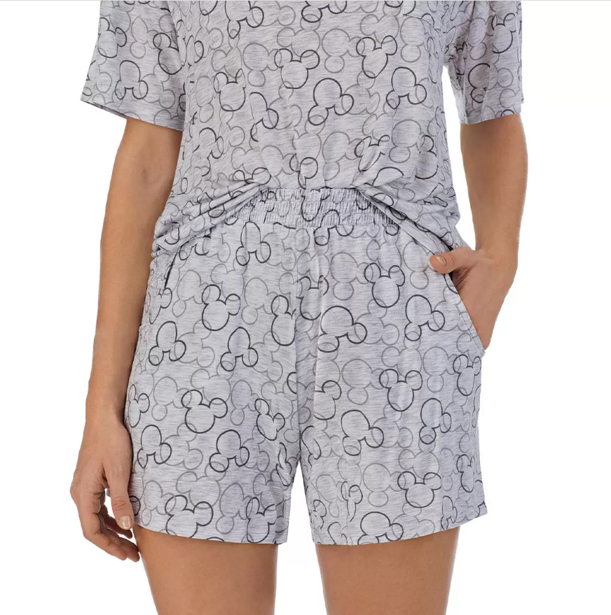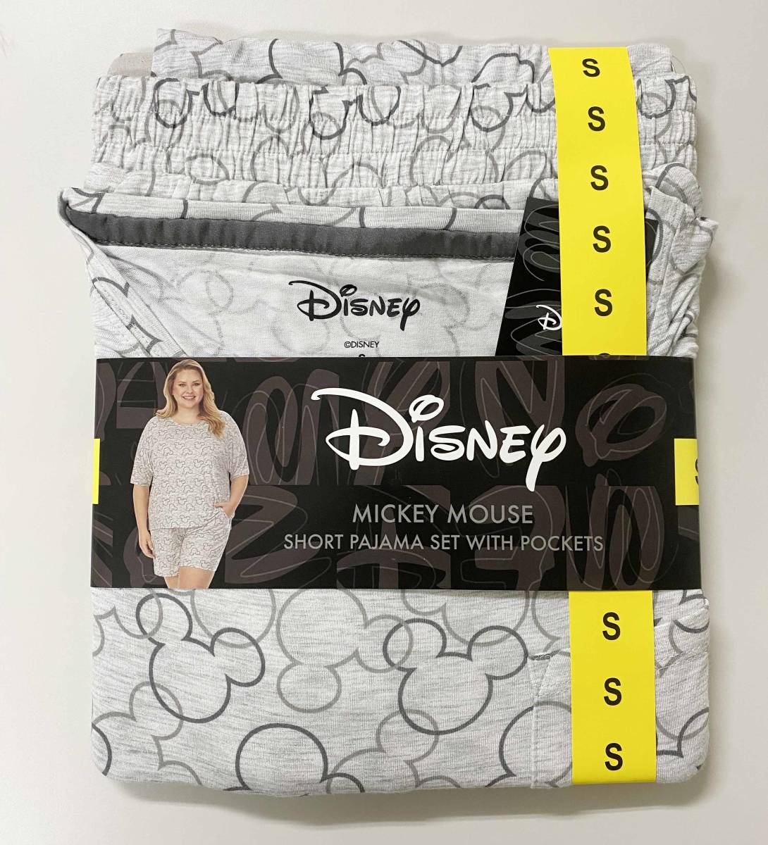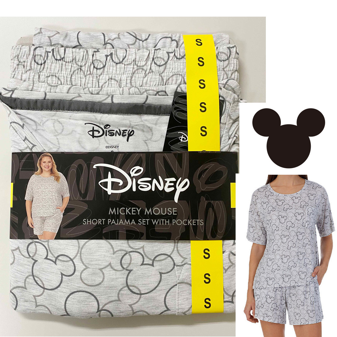 新品 S ★ コストコ ディズニー レディース パジャマ 上下 セット グレー ミッキーマウス 半袖 Tシャツ ショートパンツ ルームウェア