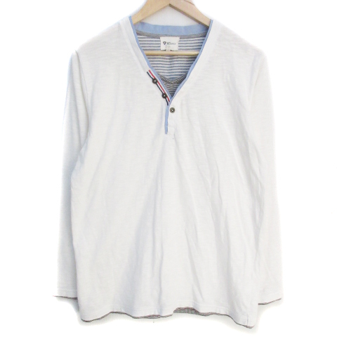 タケオキクチ ミクスパイス カットソー 長袖 Vネック ボーダー柄 マルチカラー 大きいサイズ XL 白 黒 ホワイト ブラック /FF12 メンズ