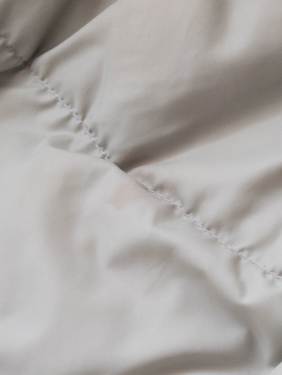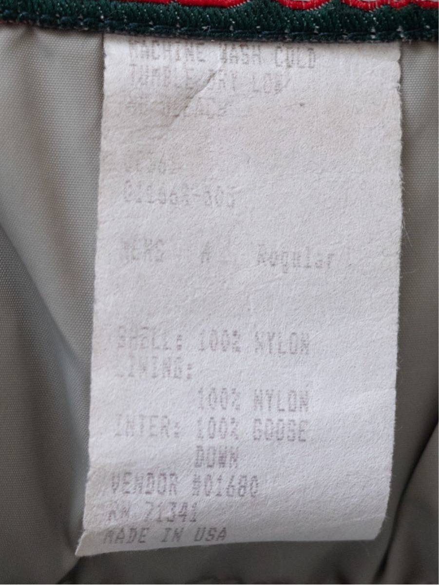 ボディはナイロン100%のグリーン。ダウンはグースダウン100%でしっかりと入っております。