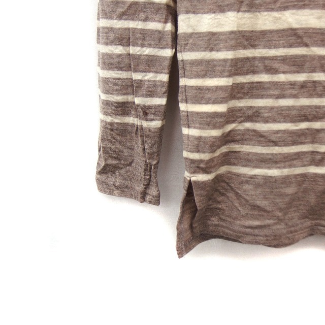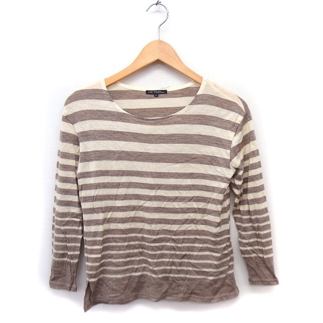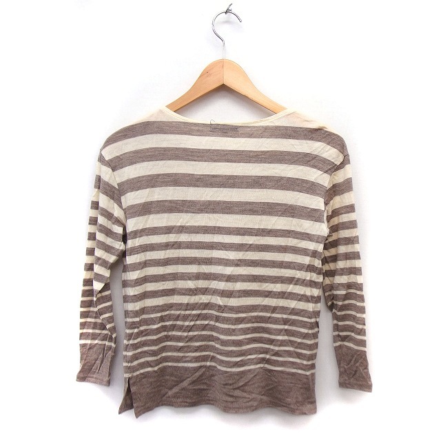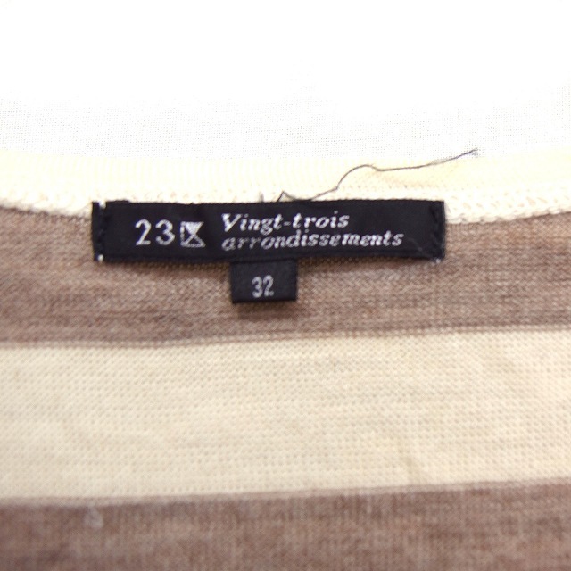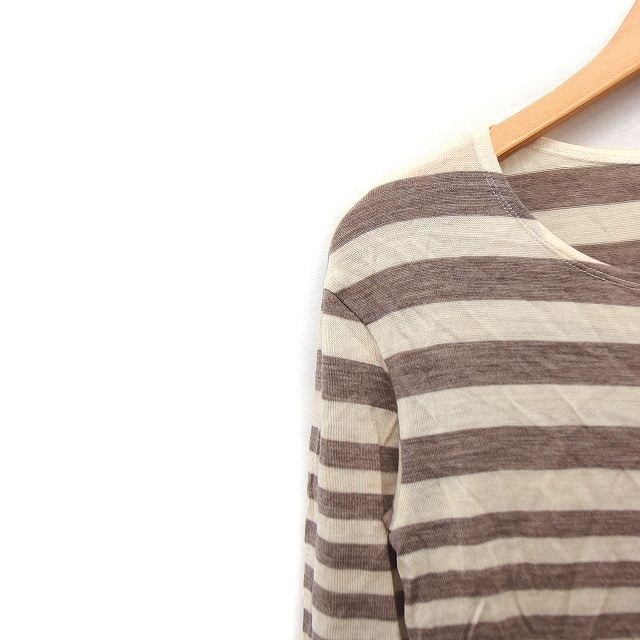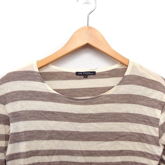23区 オンワード樫山 ボーダー ニット セーター 七分袖 ウール 32 アイボリー 白 モカ /FT47 レディース