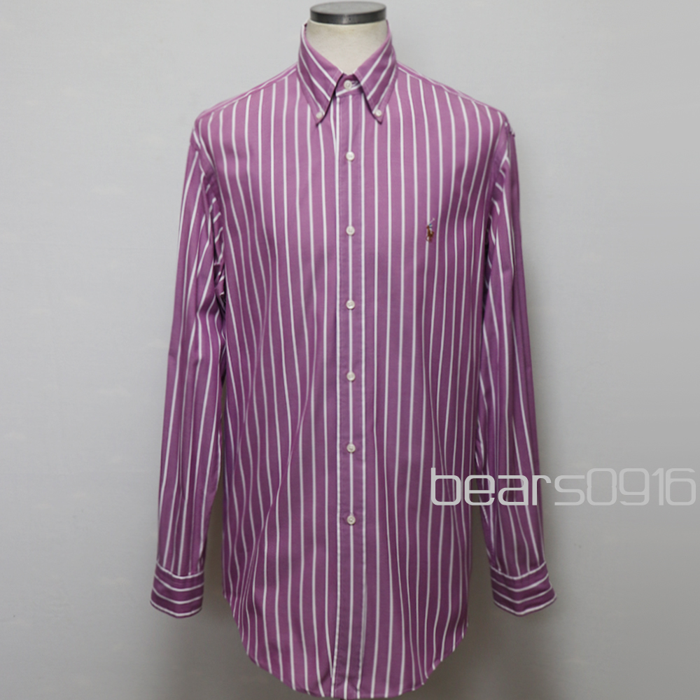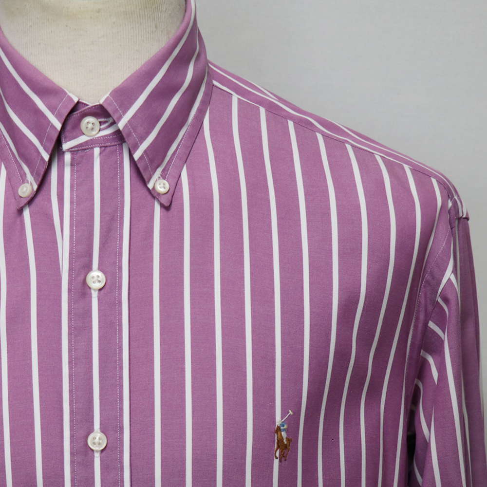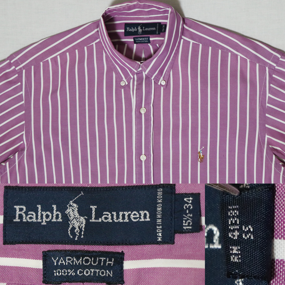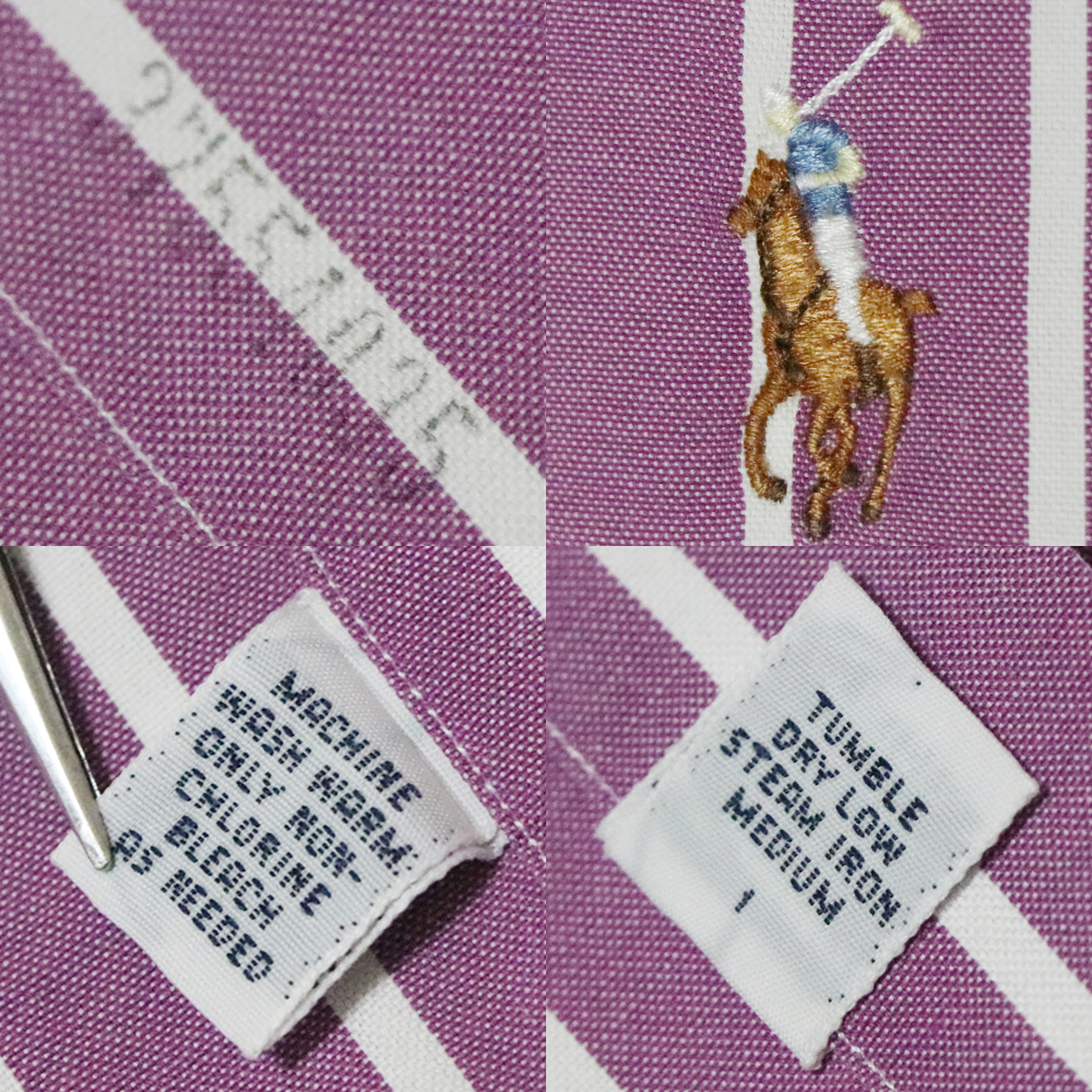アメリカ購入品 訳ありUSED品 POLO RALPH LAUREN YARMUTH ポロ ラルフローレン ヤーマス ボタンダウンシャツ 紫×白 カラーポニー 15 1/2-34 サイズです。