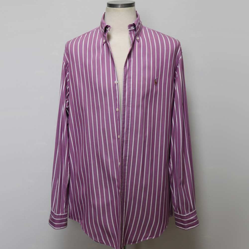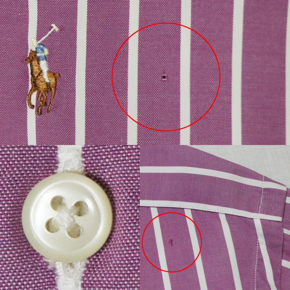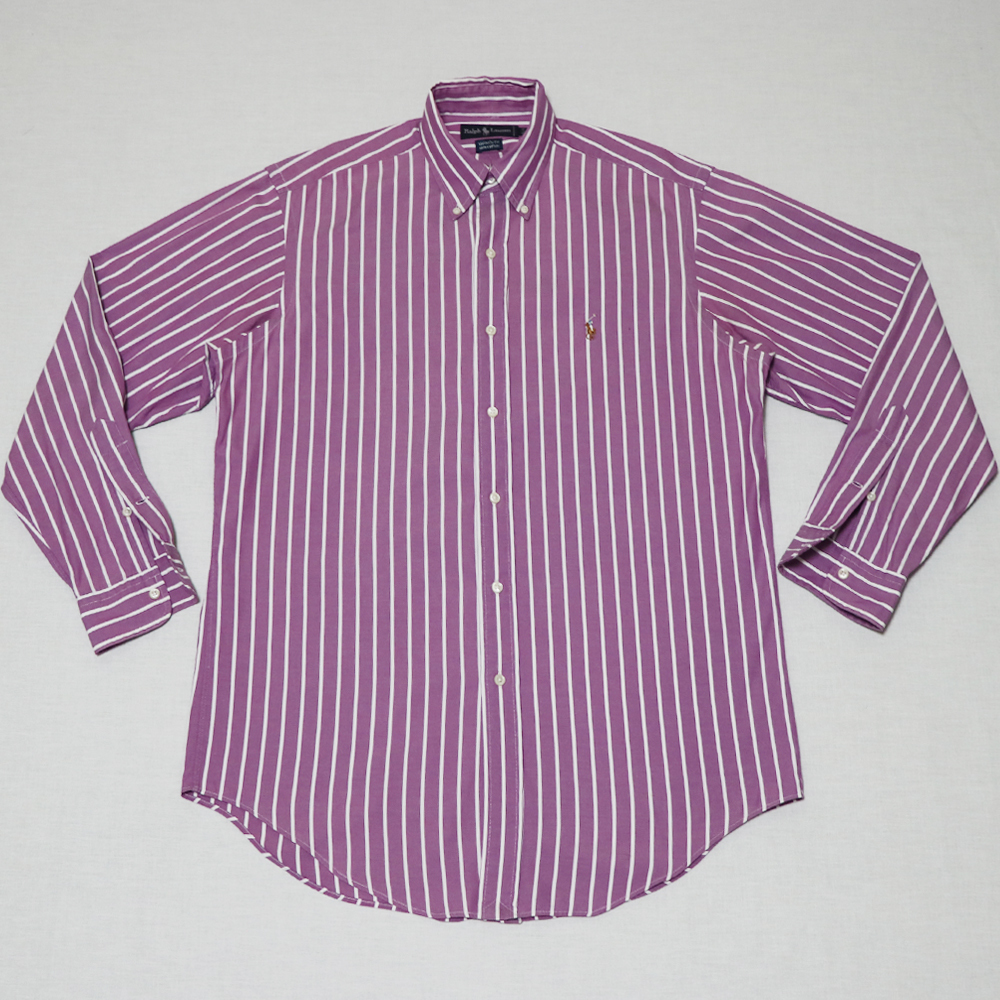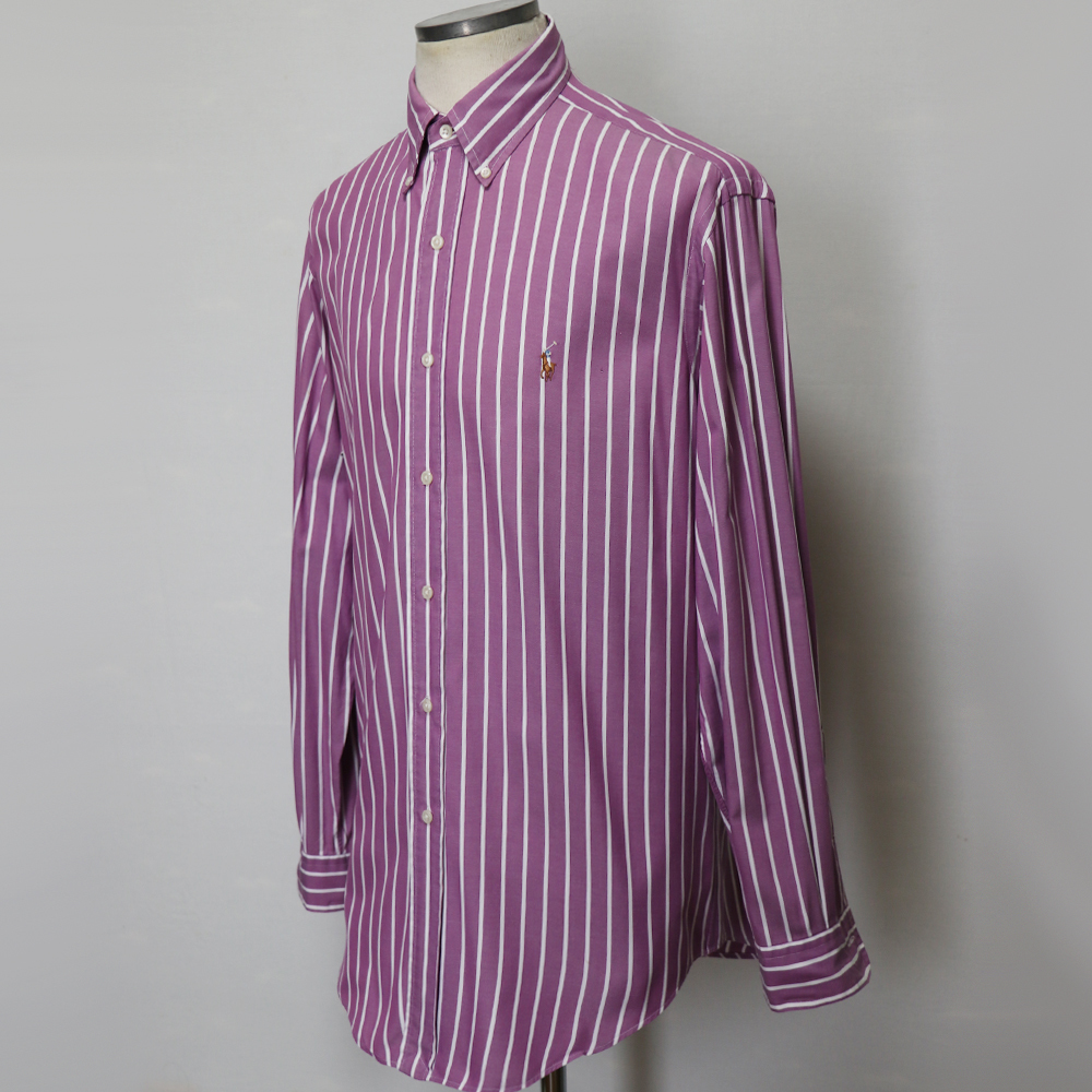 アメリカ購入品 訳ありUSED品 POLO RALPH LAUREN YARMUTH ポロ ラルフローレン ヤーマス ボタンダウンシャツ 紫×白 カラーポニー 15 1/2-34 サイズです。