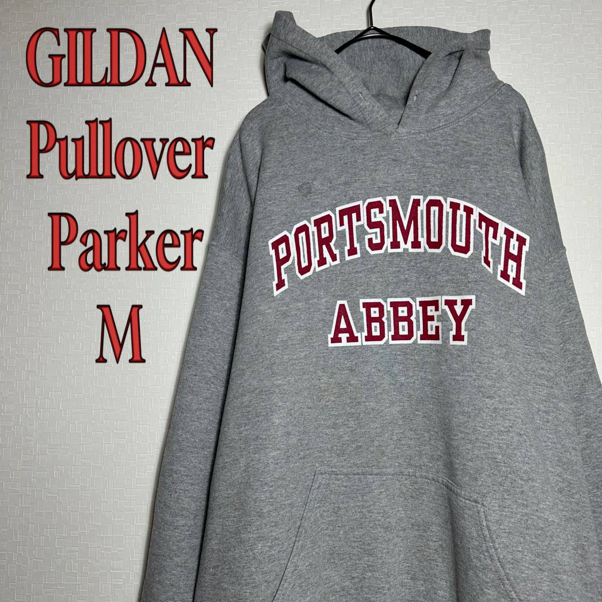 USA古着 ギルダン プリントパーカー M プルオーバー グレー アメカジ ゆるカジ スポカジ