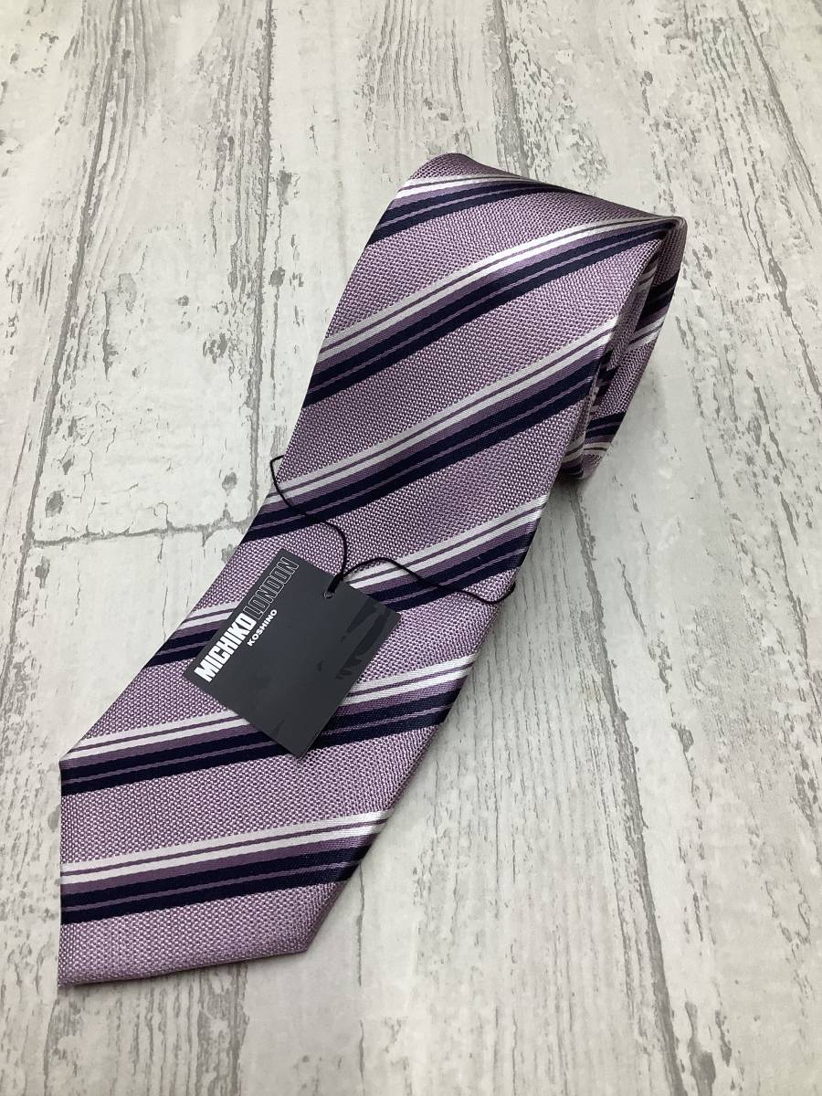 新品未使用 ミチコロンドン 日本製ネクタイ お買い得 ラベンダーベースのストライプ