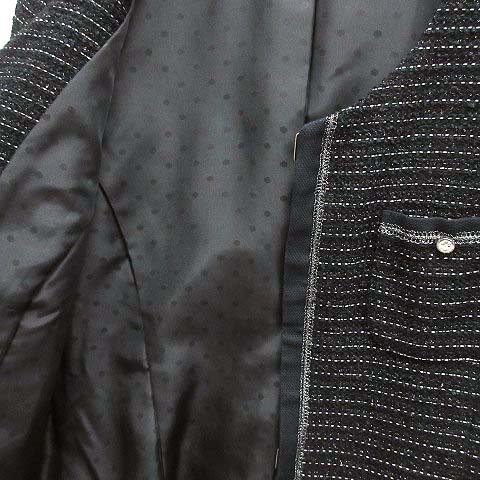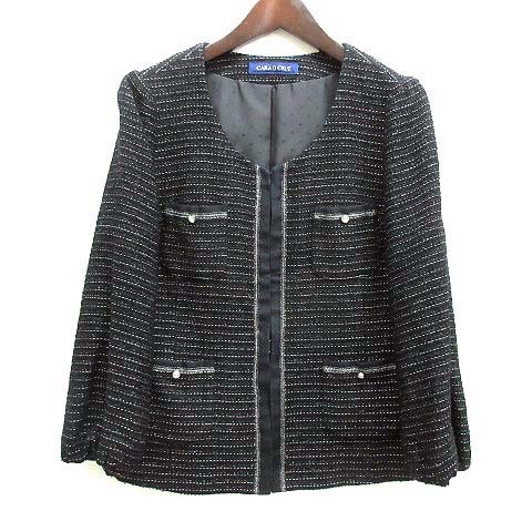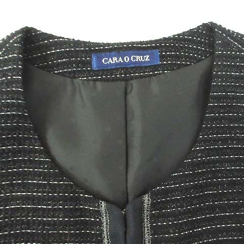 キャラオクルス CARA O CRUZ レリアン ツイード ボーダー ノーカラー ジャケット ブラック 黒 9 レディース