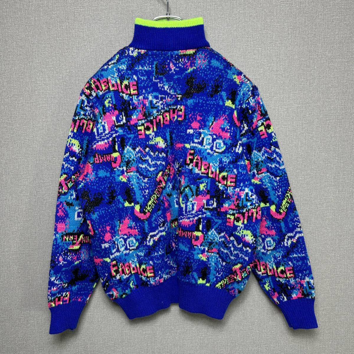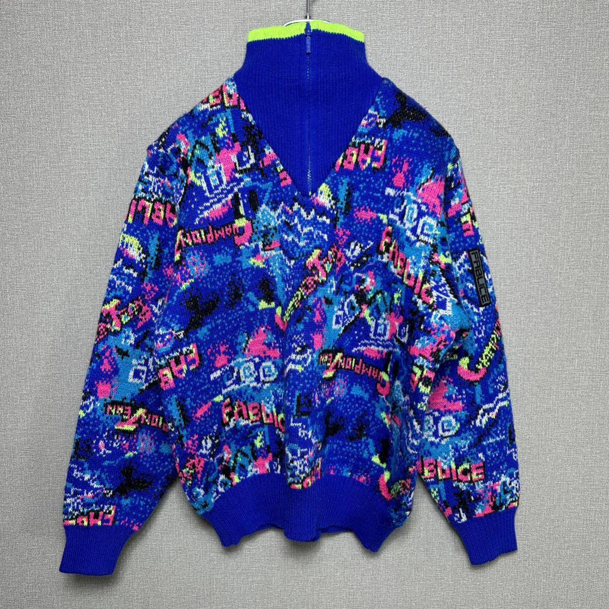YT0974 FABLICA ファブリカ Vネック ジップアップ セーター サイズ150 長袖 マルチカラー ヴィンテージ 古着 ニットセーター ジャパーナ