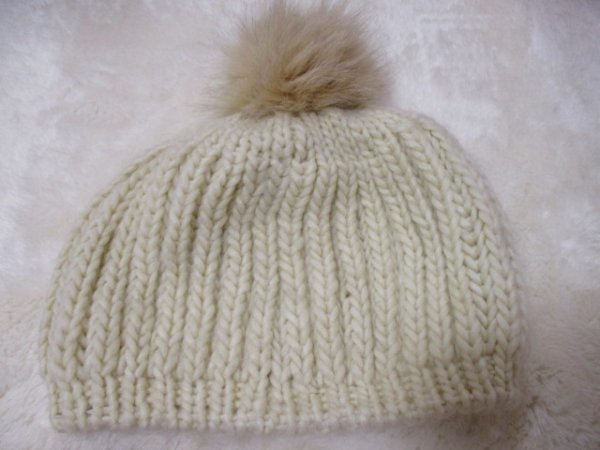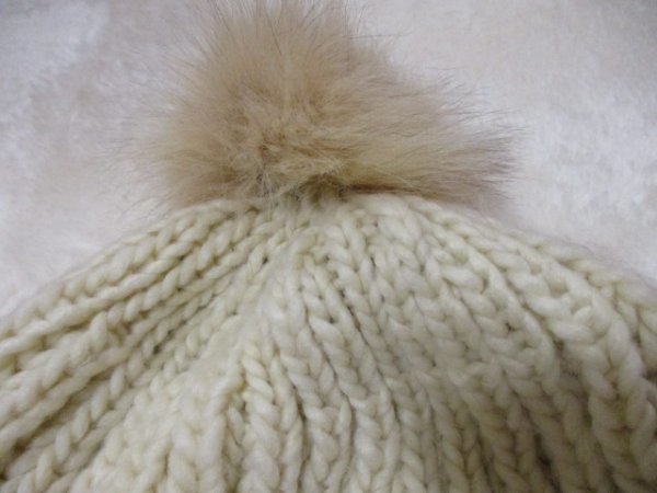 ● 帽子 ● ナチュラルビューティーベーシック ■ フォックスポンポン付き ニット帽キャップ (31213)