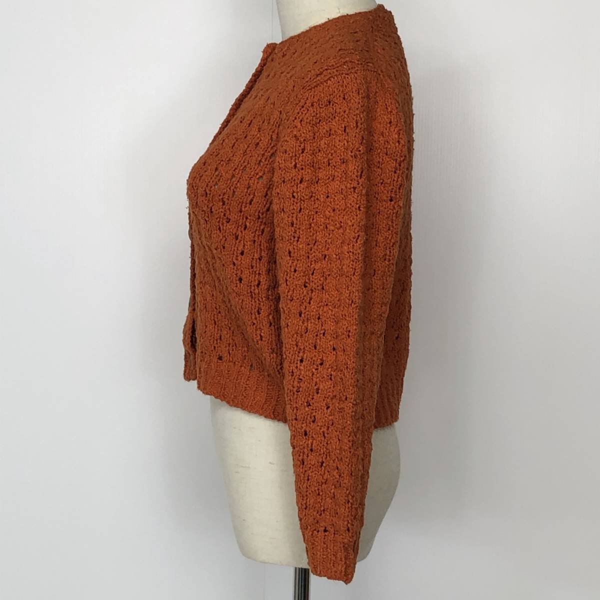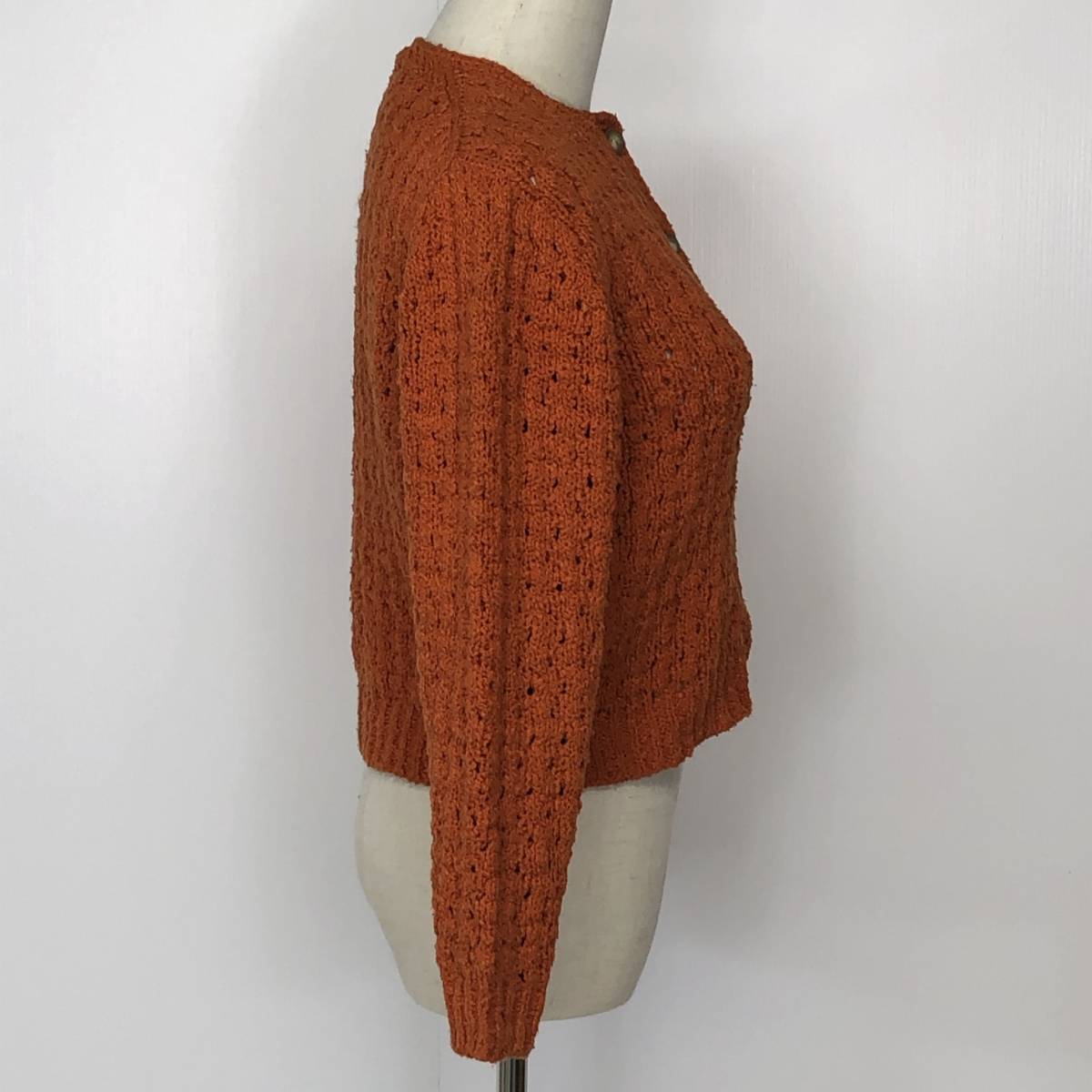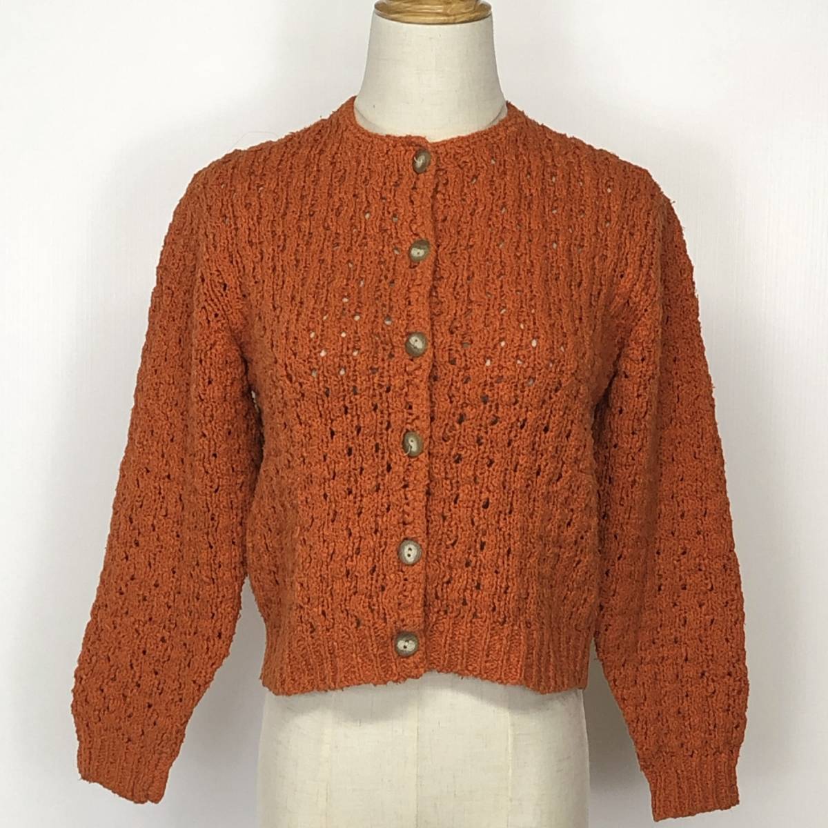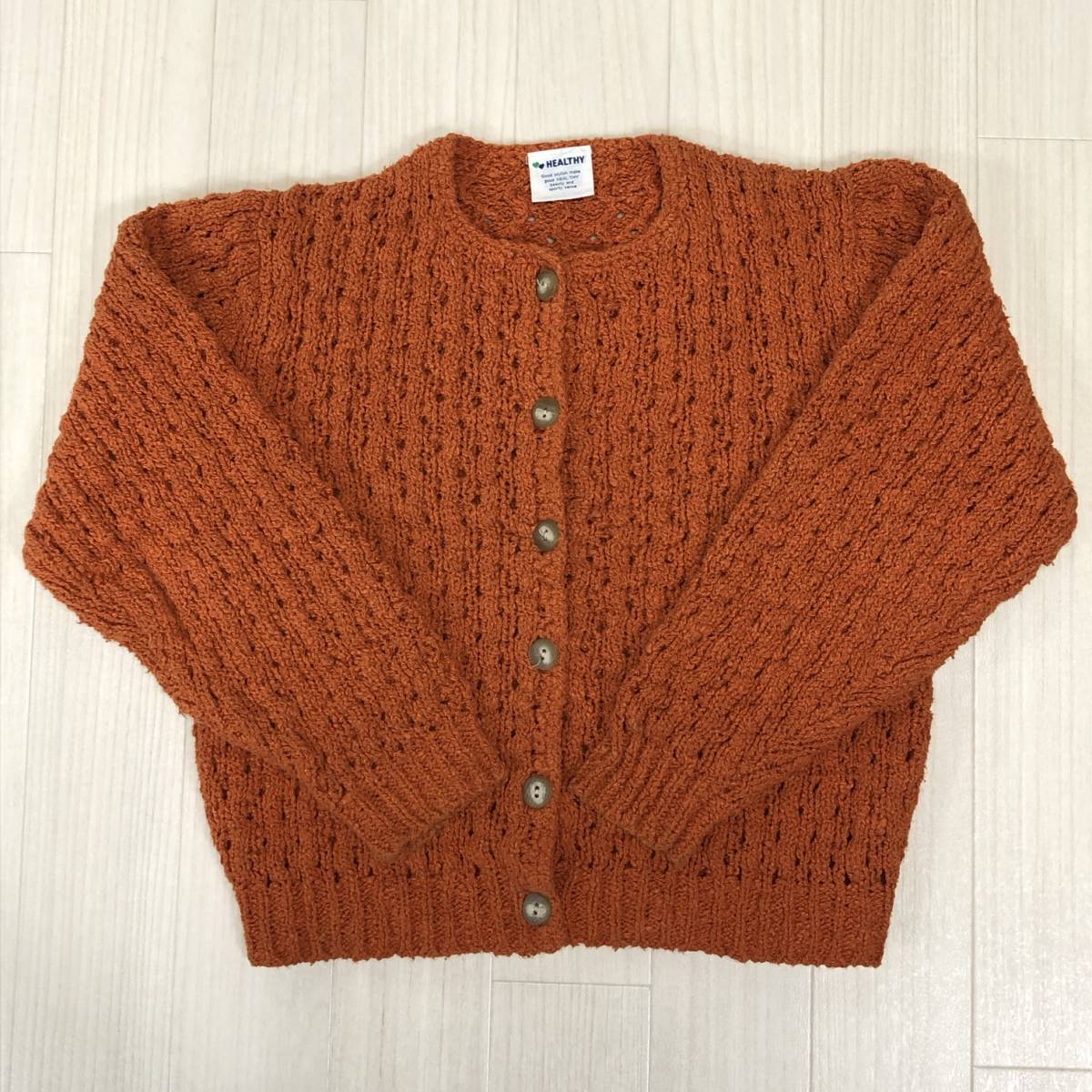 Y0263 HEALTHY レディース トップス カーディガン ニット 長袖 ショート丈 オレンジ 橙 ビビッド 綿 コットン あたたか 防寒 おしゃれ 秋冬
