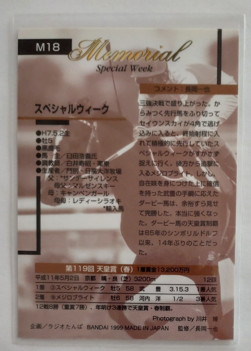 スペシャルウィーク 1999年サラブレッドカード メモリアルカード M-18