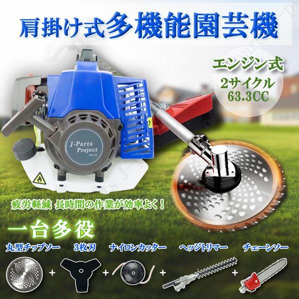 売り切り!エンジン式 多機能園芸機 2サイクル 63.3cc 肩掛式 高枝きり ヘッジトリマー チェーンソー 草削り 刈払い機 ヘッド3種付 雑草 除草 生け垣 剪定 造園 | |