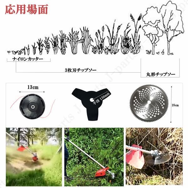 商品説明 | 売り切り!エンジン式 多機能園芸機 2サイクル 63.3cc 肩掛式 高枝きり ヘッジトリマー チェーンソー 草削り 刈払い機 ヘッド3種付 雑草 除草 生け垣 剪定 造園! ※未使用 撮影のみに使用しました、ほぼ未使用品です。今回数量限定で格安にて売り切りいたします。 【商品説明】 ●造園の基本セット「高枝チェーンソー・ヘッジトリマー」に、使用頻度の高い刈払機用ヘッドをプラスしたお得なセット! ●本体は一つでOK。庭木の剪定ではヘッジトリマーが活躍します! ●エンジン式 2サイクル 63.3cc 肩掛式 高枝きり ヘッジトリマー チェーンソー ヘッジトリマー 枝切り 草削り 刈払い機 付替え ヘッド3種付 園芸機械 田畑 雑草 除草 生け垣 剪定 造園などに ●エンジン式 2サイクル 63.3cc 肩掛式 高枝きり ヘッジトリマー チェーンソー ヘッジトリマー 枝切り 草削り 刈払い機 付替え ヘッド3種付 園芸機械 田畑 雑草 除草 生け垣 剪定 造園 ●エンジン式 ヘッド付け替え 多機能園芸機 ●2サイクル 肩掛式 排気量63.3cc ●4サイクルと比較し、パワフルでハイパワーな2サイクルエンジン。強力でオイル交換の手間なくメンテナンスが楽! ●本体ひとつで色々な用途に用いることができ、作業の準備や運搬が楽になります! ●肩掛けベルト式で疲労が軽く、機械の重さを分散でき、長時間の作業が効率よく! ●狭いスペースも大丈夫。手作業で行うには大変だけど、大掛かりな専用機械を用意するほどでもない、そんな需要に応えます! ●剪定作業アタッチメントは連結部分を外すだけで簡単に脱着可能。メンテナンスが手間いらずです。 <付替ヘッド:高枝のこぎり チェーンソー> 最大1.6メートルまでシャフトを伸ばせる高枝チェーンソー エンジンのハイパワーで高木の枝が楽々切れる。 はしごや脚立を使わなくとも、大きくなってしまった庭木の枝切り作業が可能に!!分割で持ち運び、車の荷台にも積みやすく置き場所にも困りません。 <付替ヘッド:枝切り機 ヘッジトリマー> 刈り込み幅 おおよそ42センチ 刈り込み面に合わせて刃の角度をカンタン固定、剪定作業が楽々 曲がるフレキシブルシャフトで小回りが効き、動かずとも遠くまで刃が届くので疲れにくい! 電動とは一味違うエンジンのハイパワーで枝が楽々切れる。 <付替ヘッド:ナイロンカッター> 狭い場所での草刈り 金属チップソーより安心安全 庭 通路 家庭菜園 お墓 小石の跳ね飛ばしや、作業中に硬いものに触れた際の跳ね返りが少ない! 径2.5?3mmのナイロンコードを使用 草刈り機を回転させたままでも、本体底にあるタップ部分を地面で叩くことにより、コードが繰り出される半自動式 <付替ヘッド:丸型チップソー、3枚刃カッター> 中心穴径25.4mm 一般的な草刈用 広範囲の草刈り、雑草の刈払いに。庭 広場 畦 のり面 果樹園 畑 田 荒れ地 道ばた 道路 3枚刃はチップソーと比較しメンテナンスと経済性に勝ります。研ぐことで切れ味がよみがえります。 ナイロンカッターより強力な刈払いが可能。 目的とする刈り草・場所により使い分けることで効率化、作業時間の短縮ができます。 ※使用頻度の高い「草刈り機ヘッド チップソー&ナイロンコード」や、「高木枝切り用チェーンソー」が付属したセットも販売中!! 【商品スペック】 ・エンジンタイプ:2サイクル ・点火方式:スパークプラグ ・排気量:63.3cc ・標準出力:2.2kw ・ガソリンタンク容量:1300ミリリットル ・使用燃料:混合ガソリン(25:1) ・本体重量:約6.3kg ・アタッチメント(付替えヘッド):約1.5?2.5kg 【初期使用時】 ・商品到着時は組み立て前に最初にエンジンの動作確認をして下さい。 エンジンを掛ける手順 1:燃料を入れる。 2:ポンプを複数回押して燃料を十分にキャブレター内へ回す。 3:チョークを開ける。 4:コイルを勢い良く引いて回す。 ※気温等条件により、エンジンのかかりが悪い場合があります。最初はチョーク全開(OFF)で試行し、エンジンがかからなければ少し閉めて(少しON側へ)試行し、それでもかからなければまた少しチョークを閉めて試行するようにしてください。 【組み立て 及び 付替えヘッドの交換】 ・必ずエンジンを停止し、手袋など着用のもとで交換作業を行ってください。 ・ネジ類は使用中に緩まないよう、工具を使用ししっかりと閉めてください。 ●商品の使用説明は、是非、商品ページ上に記載しておりますユーチューブ動画をご参照ください。外部サイトですが、安全に見ていただけるサイトです。 ●お得なセットを格安にて売り切りいたします。 ●今回、数量限定で格安にて売り切りいたします。 送料一律 本州 2800円 北海道九州 3000円 沖縄離島は4000円での一律元払いにて発送いたします。 「使用上 注意事項」 ※使用時やその直後はエンジンが熱くなるので火傷に御注意下さい。 ※使用中はメガネや保護具などを装着し砂塵の跳ね返りなどに十分注意して下さい。 ※足元が不安定な場所などでのご使用は危ないのでお止め下さい。 ※使用時は不必要にエンジン回転を上げず、適正