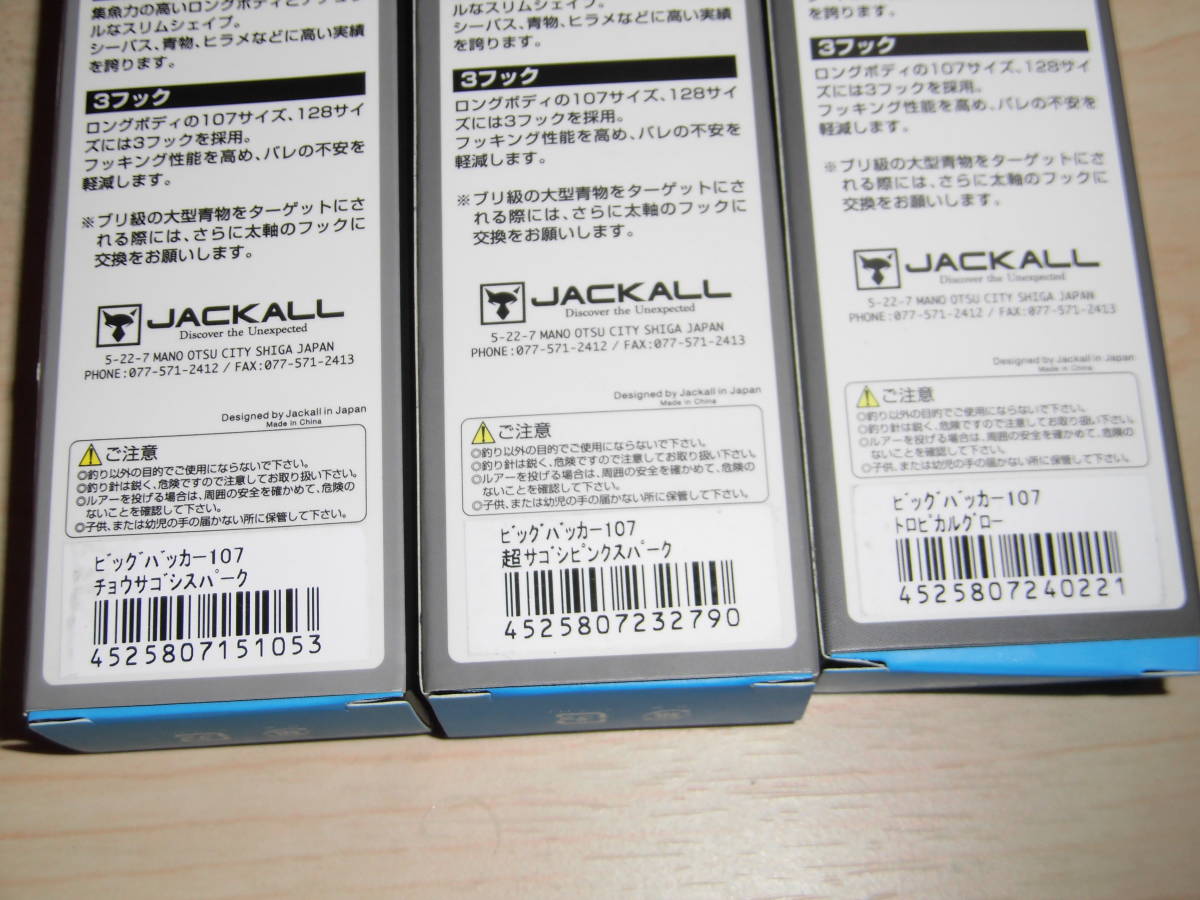 ジャッカル ビッグバッカー 107 27g チョウサゴシスパーク・超サゴシピンクスパーク・トロピカルグロー 3個セット