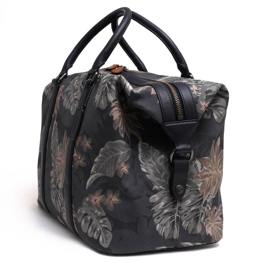 | ハワイアンパーム(ボタニカル柄)のプリントをまとったラグジュアリーなボストンバッグ。ファブリック地の内部はB4サイズ収納でき、ジップポケット、携帯電話ポケット、そしてマルチファンクションポケットが備えられ、整理整頓が容易になっています。たっぷりの容量で荷物がたくさん入り、出張や旅行に最適のアイテム。連泊や長期滞在で荷物の多い方やスポーツで持ち歩くアイテムが多い方などに特におすすめです。 |