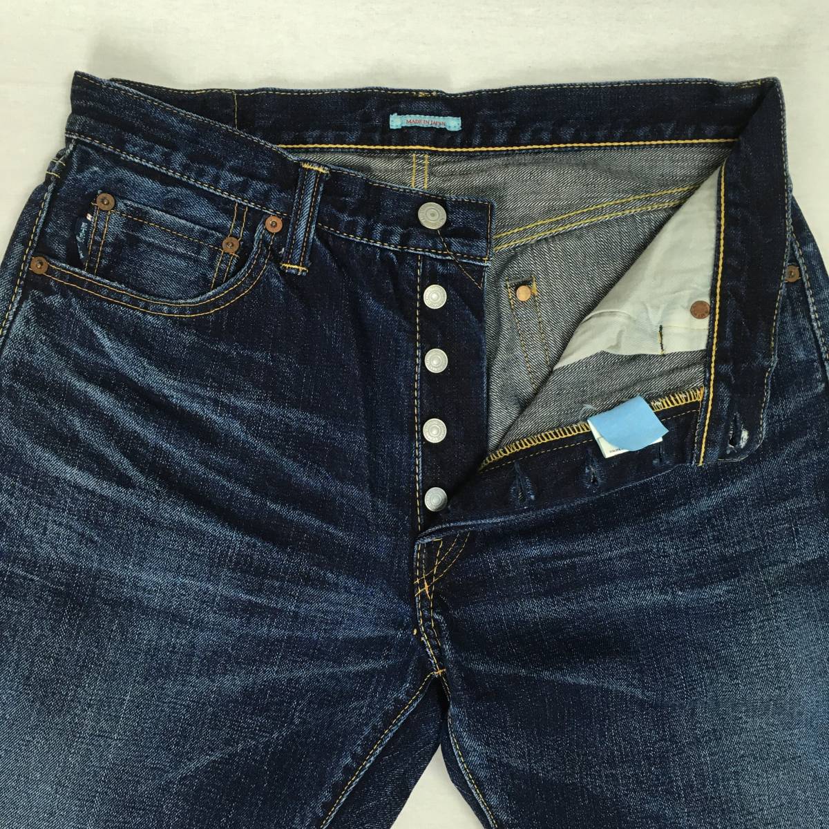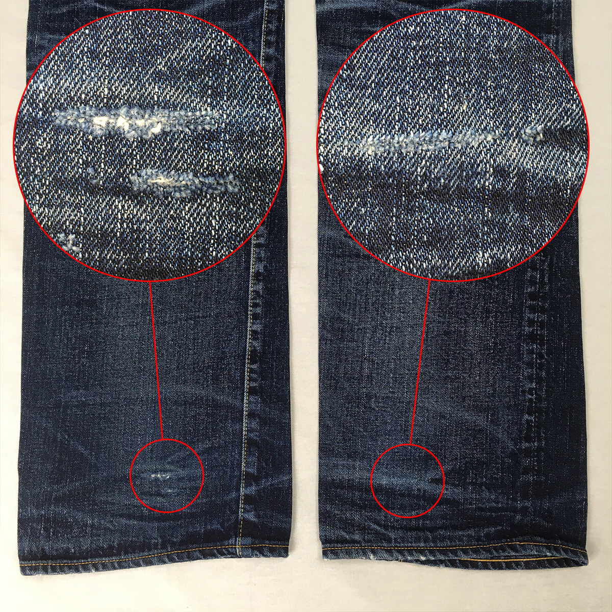 元からユーズド加工が施されており、ヒゲやハチノス色落ち等は加工によるものです。