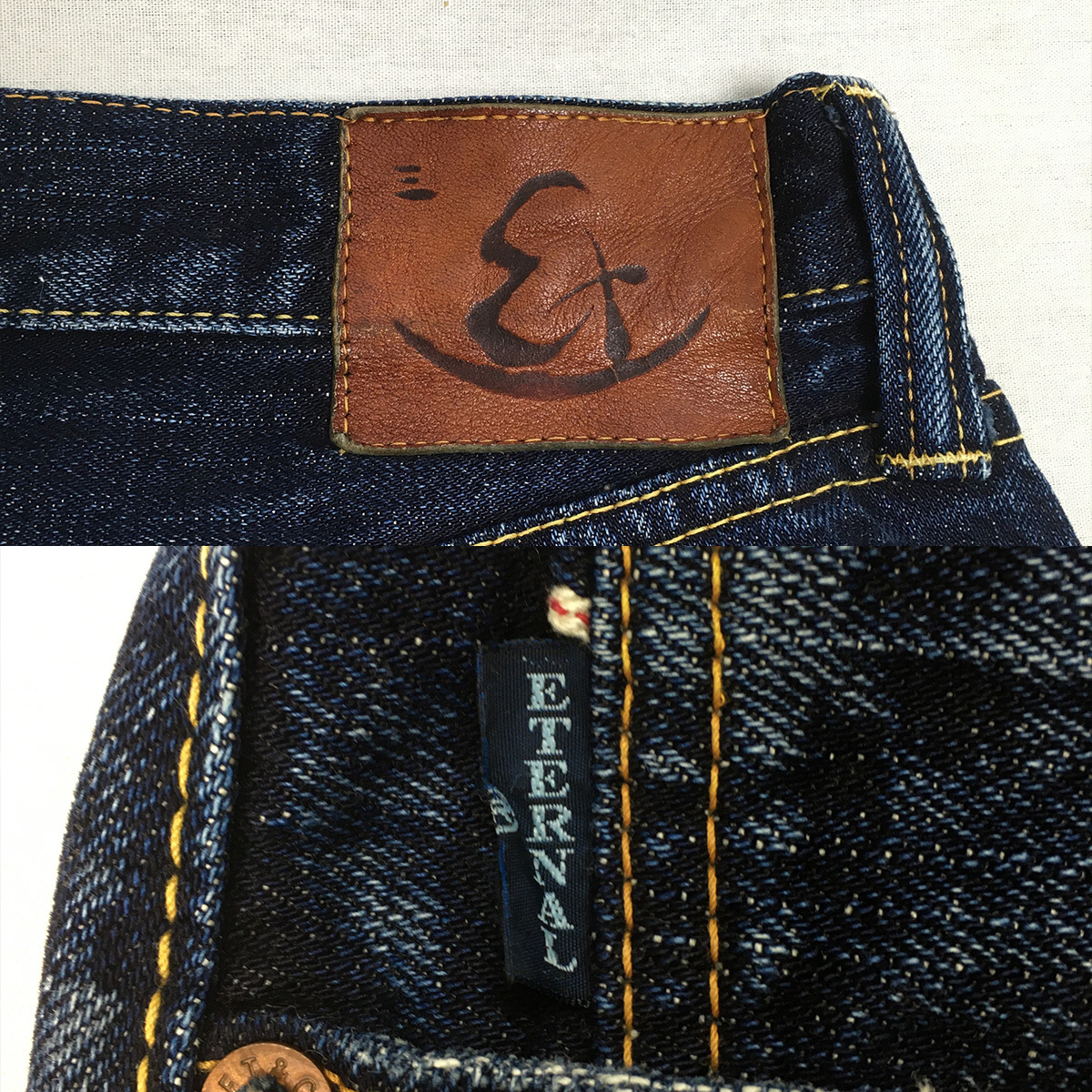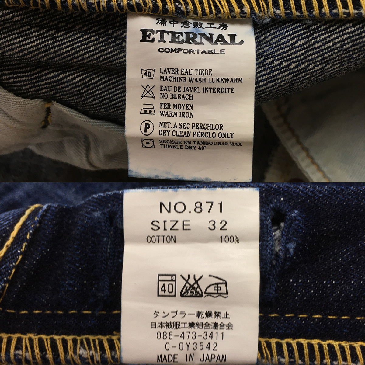 ETERNAL エターナル 備中倉敷工房 871 日本製 立体ヒゲハンドシェービング 5Pストレート W32 14.5oz セルビッチ 隠しリベット ユーズド加工
