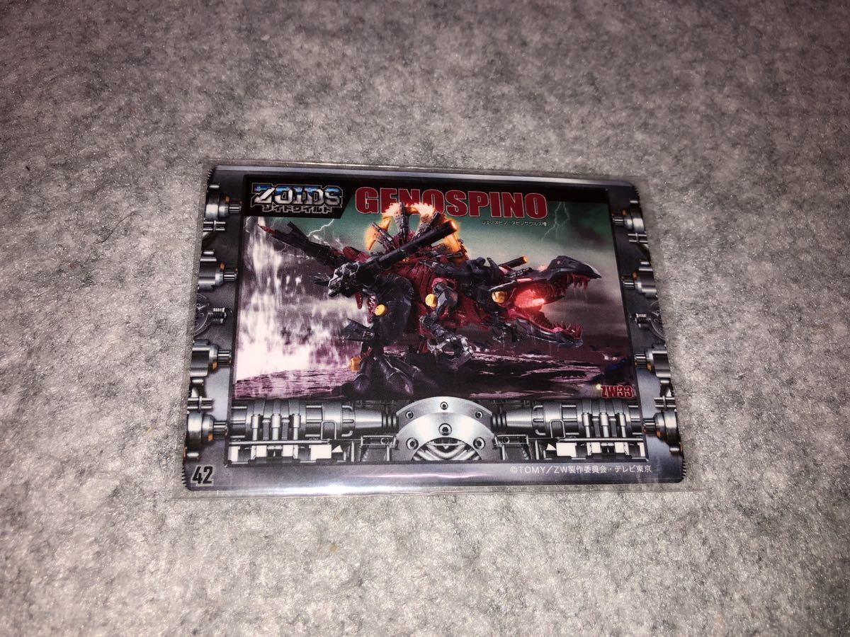 ゾイド トレーディングカード ジェノスピノ(スピノサウルス型) 未使用品です。スリーブに入れ保管していますがたわみや白欠けなどある場合があります。極度に状態を気にされる方は入札をお控えください。ノークレーム、ノーリターン、ノーキャセルでお願いします。