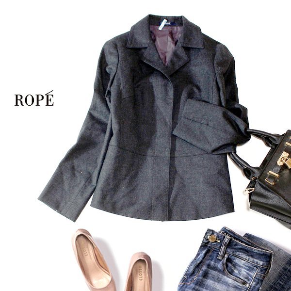 ☆☆ 美品 ROPE' ロペ ☆☆ 上品綺麗め フラノウール スーツ生地 ジャケット 7AR 秋 冬 合服 23C10