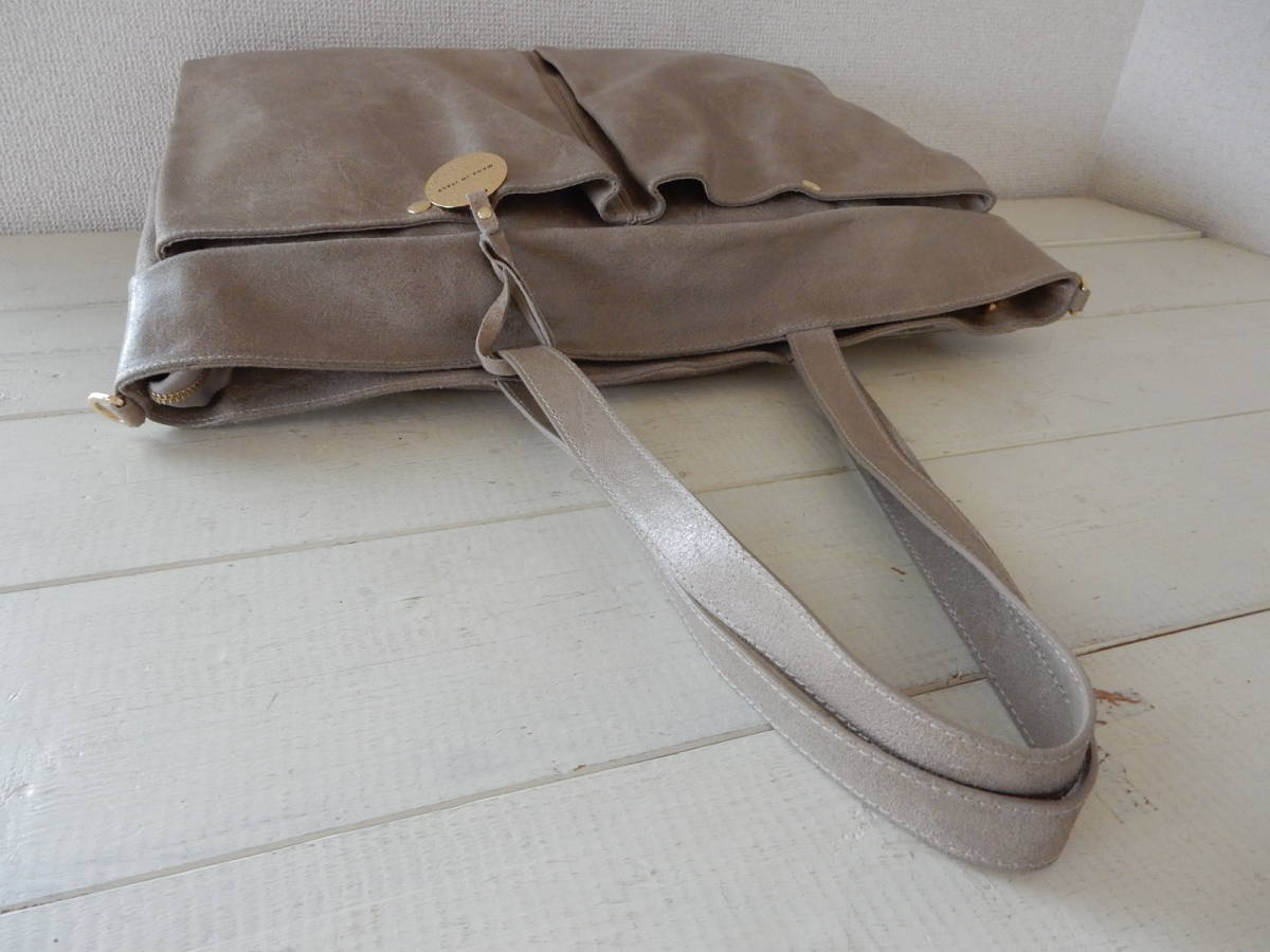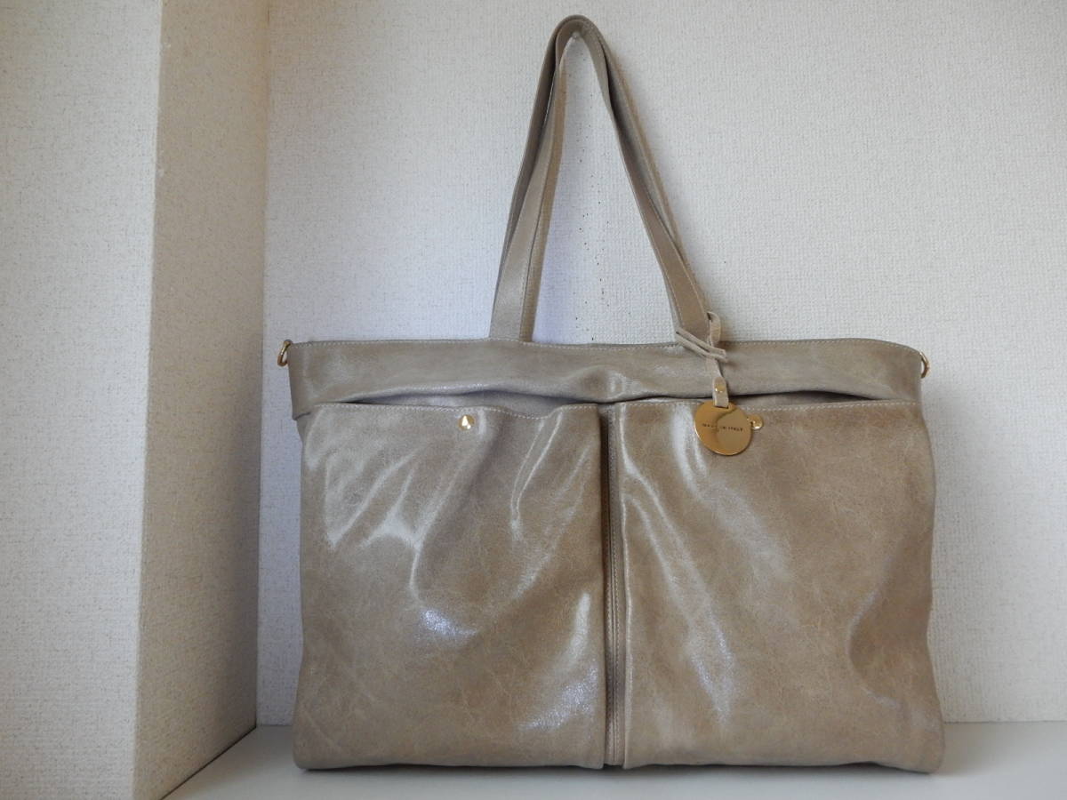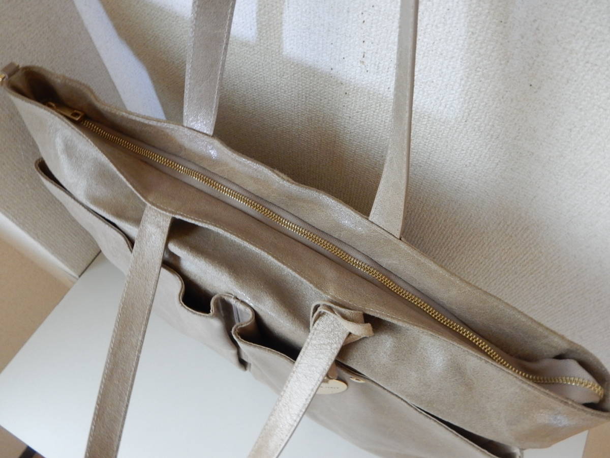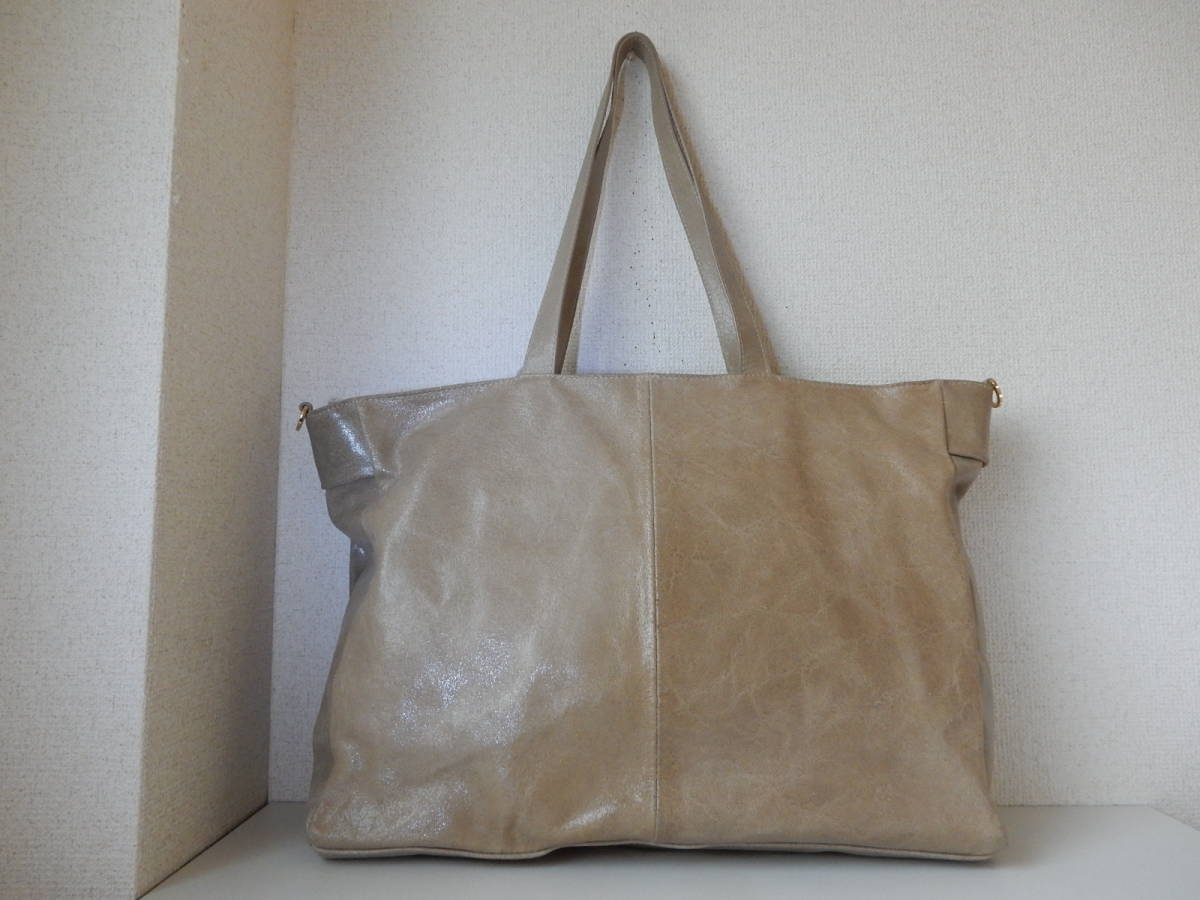 イタリア製☆本革☆BEVINI MODENA(ベヴィニ モデナ)☆大判A3対応☆5ポケット☆肩掛けOK☆トートバッグ サンドベージュ