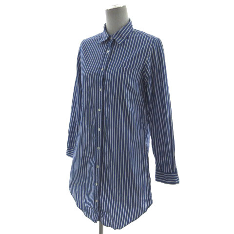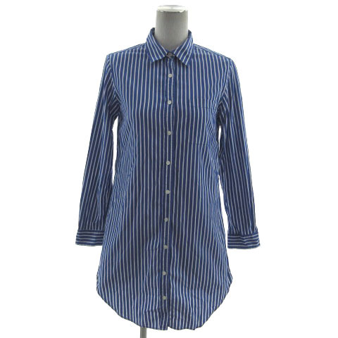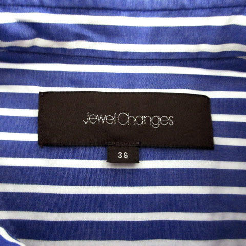 ジュエルチェンジズ Jewel Changes アローズ シャツ 長袖 ロング丈 日本製 コットン ストライプ ブルー 青 ホワイト 白 36 レディース
