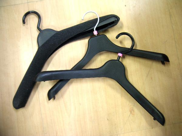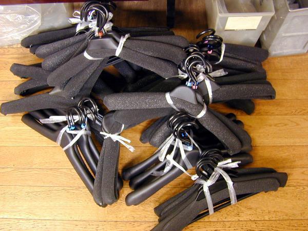 プラスチックハンガー50本セットです。何本かはわかりませんが、滑り止めのスポンジ付も混ざっています。