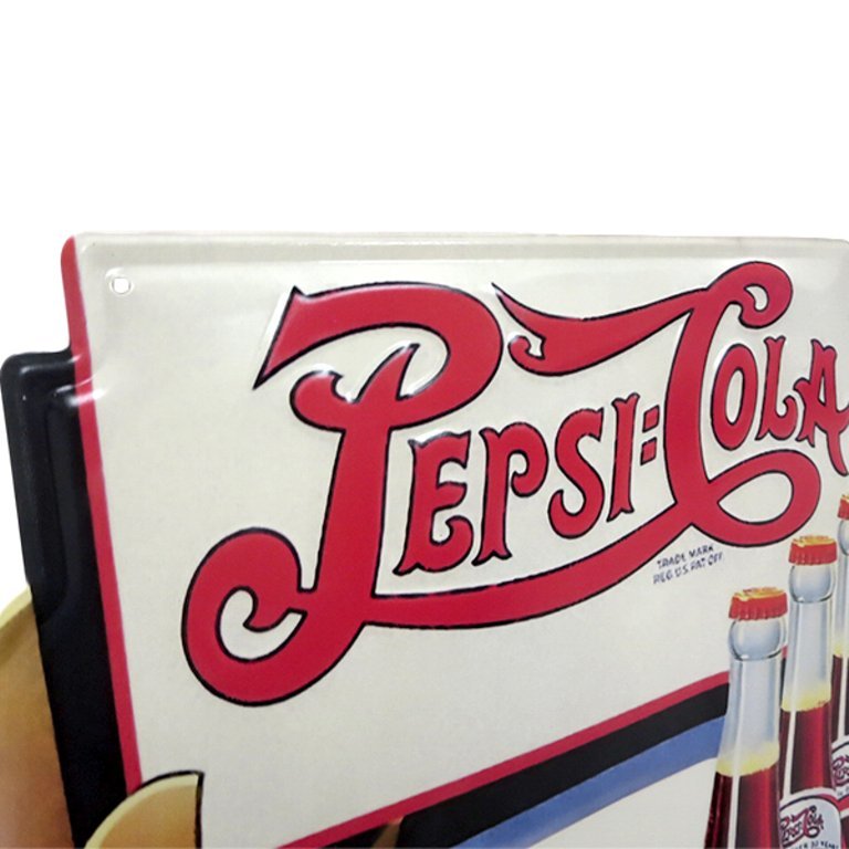 【210636】【PEPSI / ペプシ】のダイカットエンボスメタルサインプレートです♪昔のペプシコーラのデザインをしたブリキ看板で、凸凹になっているのがカッチョイイ!大きめのサイズ感もGOOD !です!!お部屋やガレージに飾れば、アメリカンなインテリアが演出ができちゃいますよ♪看板に穴が開いていますので、壁にかけたりすることも可能ですっ【サイズ】W590/D5/H475mm【材質】スチール製