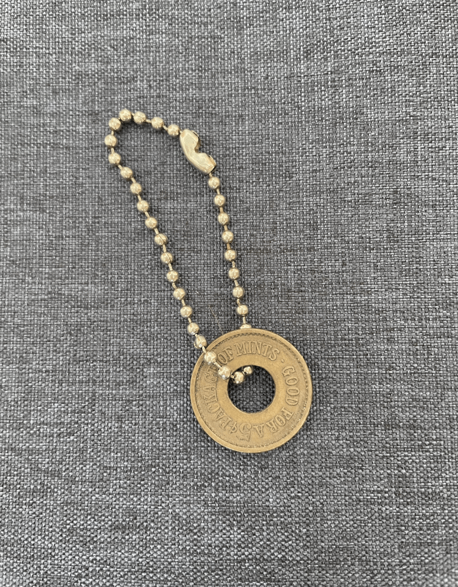 このトークンは、実際にで使用されていた店舗のトークンです。そのオールド・トークンをストラップにしました。