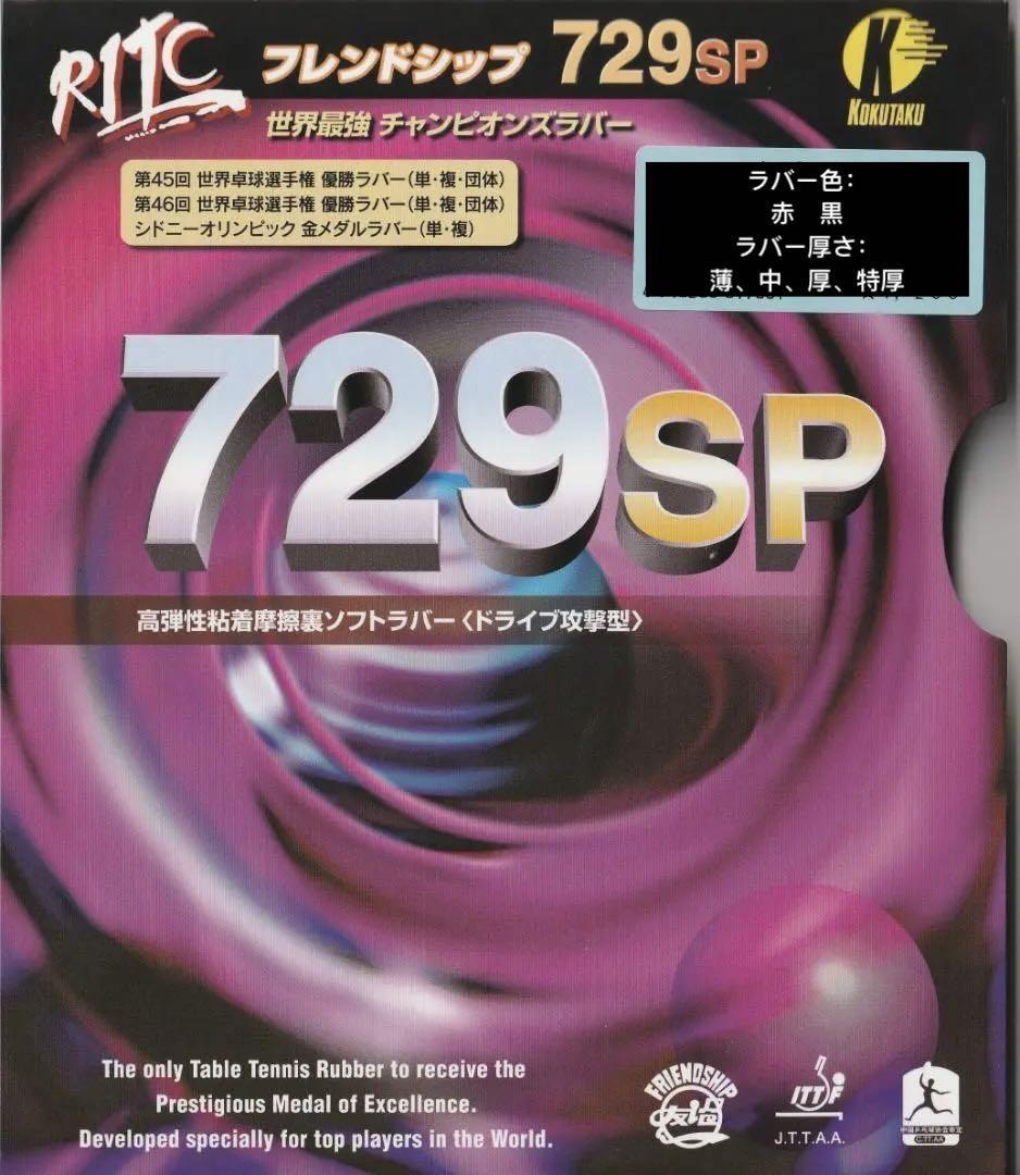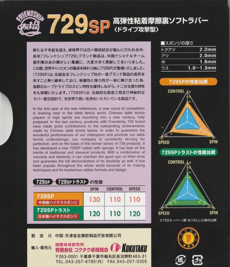 ※『フレンドシップ729 SP』は従来の『フレンドシップ 729 王楠』の名称を変更したもので、ラバー及びスポンジの設計は同じです
