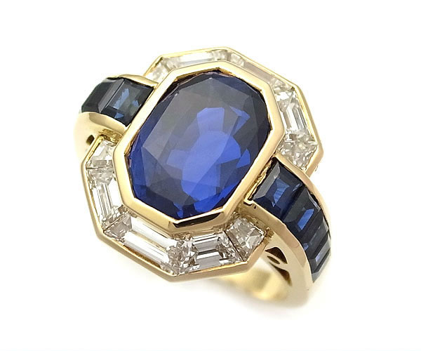 コメント 創業1613年。名だたるヨーロッパ王侯貴族に愛されてきた「MELLERIO dits MELLER(メレリオディメレー)」。フランスが誇るグランサンク(パリ五大宝飾商)のひとつに数えられ、現代の息吹を感じさせるジュエリーを手がける高級ブランド。深いブルーの気品ある輝き7.09ctもの大粒サファイアをダイヤモンド(計1.21ct)で飾った美しいフォルム(センターモチーフ部分横14mmx縦17mm)。イエローゴールドのアームにもサファイア(計1.53ct)をセットした豪華なリング。