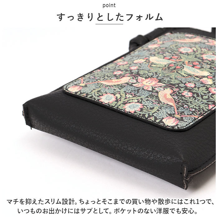 商品説明 | ・・ミニマルスタイルにおすすめ。ナチュラル可愛い「アートプリントスマホショルダー」が新登場。 ・【ウィリアムモリス×JOUET】 ・テキスタイルで有名な「ウィリアムモリス」と、バッグブランド「JOUET」のコラボデザイン。落ち着きのある風合いのボディに、可愛らしいアートプリントをプラス☆ ・【コンパクトサイズ】 ・お出かけ時にササッと持ち出して、身軽にGO!スマホがスムーズに収まる縦型タイプで、旅行や野外でのイベントでも活躍するアイテム。 ・【ワンタッチ開閉】 ・開口部は、片手で簡単に開閉できるマグネットボタン式。中身のこぼれ落ちを防ぎつつ、取り出しがスムーズ。 ・【すっきりとしたフォルム】 ・マチを抑えたスリム設計。ちょっとそこまでの買い物や散歩にはこれ1つで、いつものお出かけにはサブとして。ポケットのない洋服でも安心。 ・【サッと取り出せるフロントポケット】 ・前面のポケットには、ポケットティッシュやパスケースをIN。 ・【使い方自在】 ・ショルダーストラップの結び目を変えることで、簡単に長さ調節可能。斜め掛けや首掛けなど自分仕様にアレンジ☆ ・【ポケット仕様】 ・前面:オープンポケット×1 |