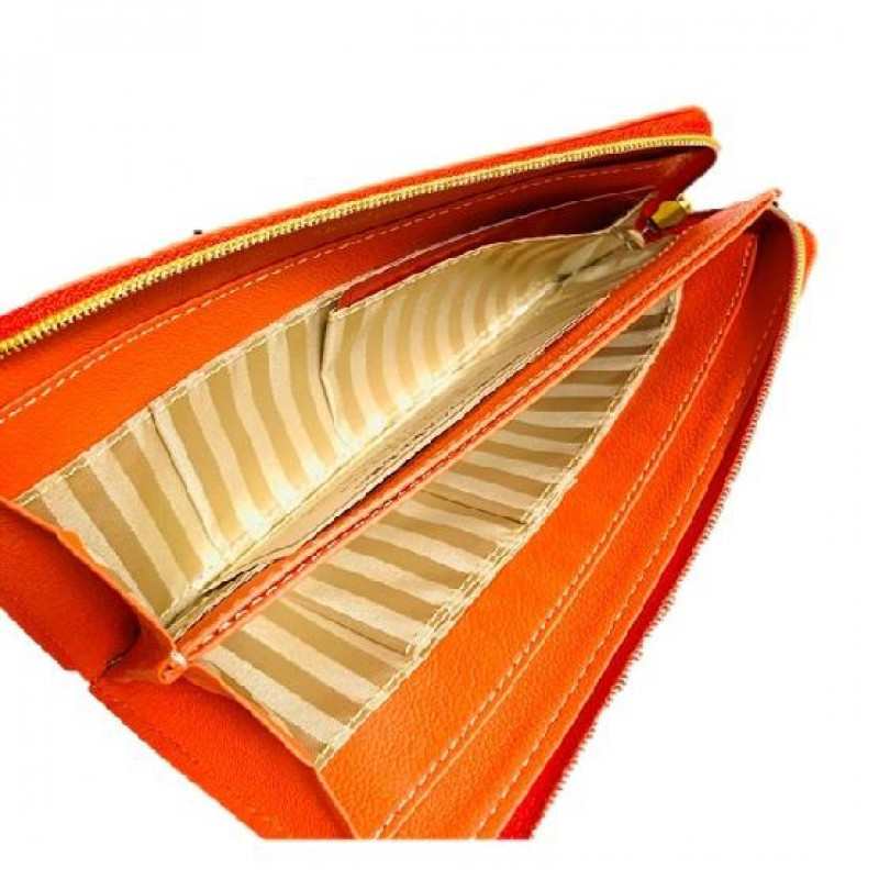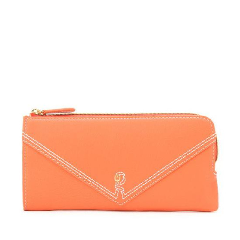 薄くて小さめのファスナー長財布。カードポケットは立体的な仕様になっています。小銭は、外側のファスナーポケットや、内側の真ん中の仕切りになっているポケットにも収納できます。機能的でデザイン性のある「超軽量」の長財布です。