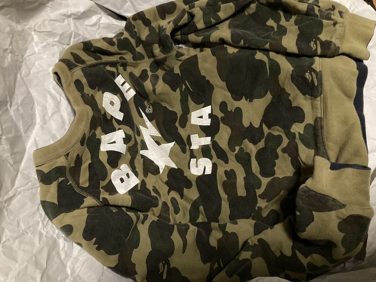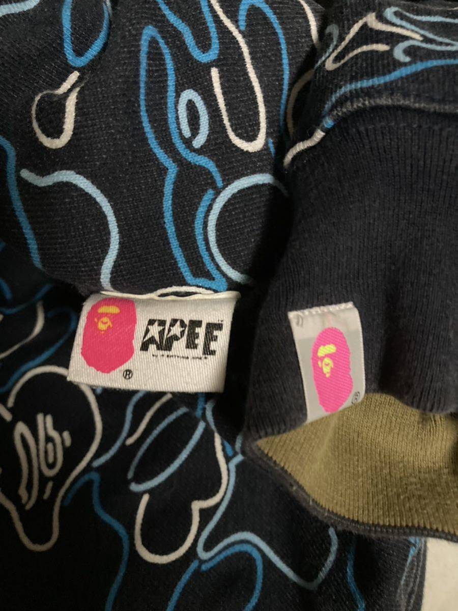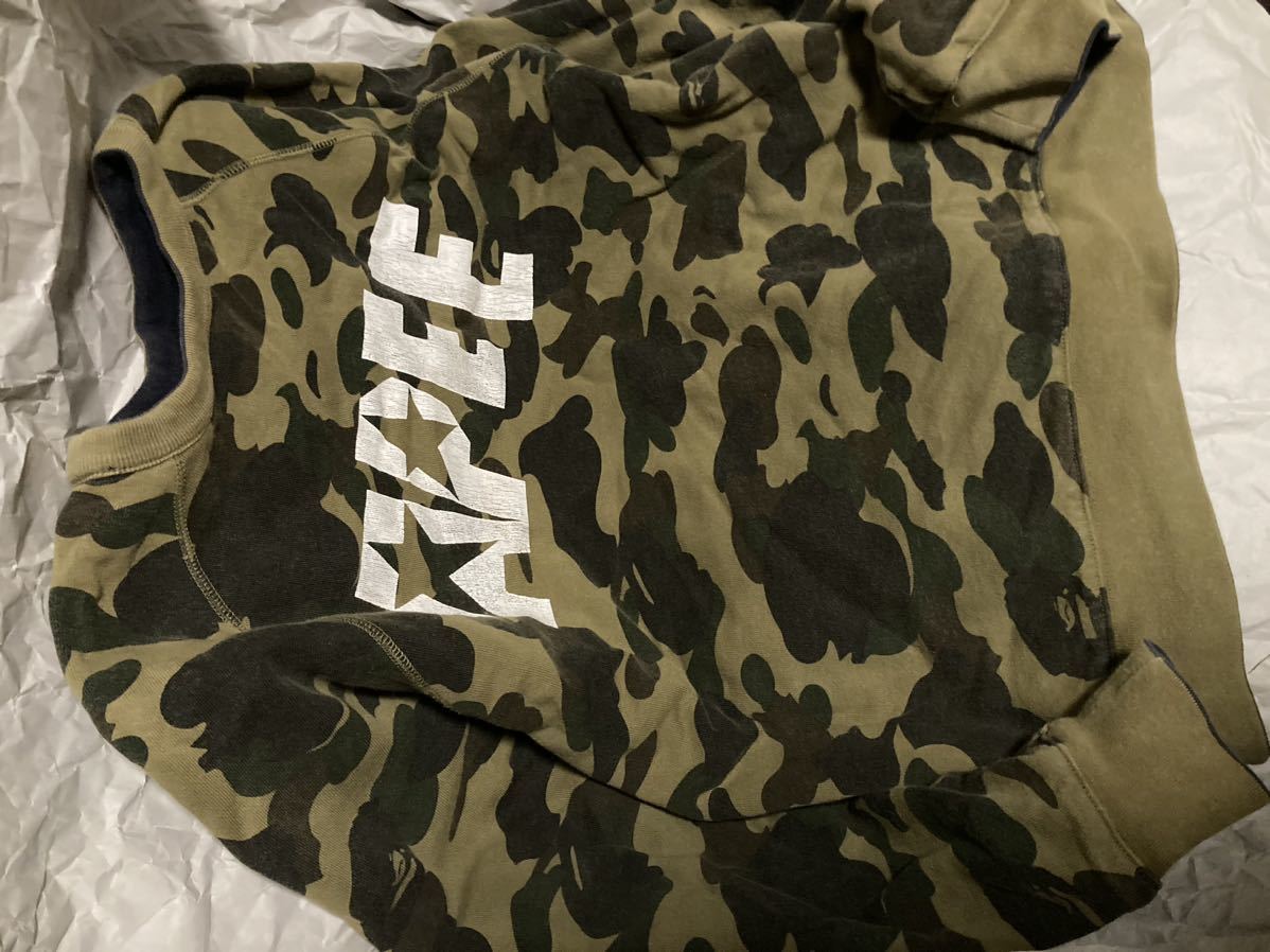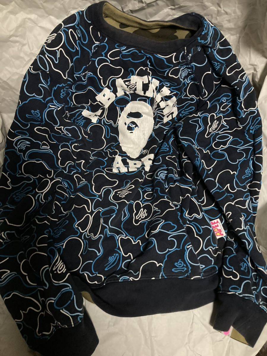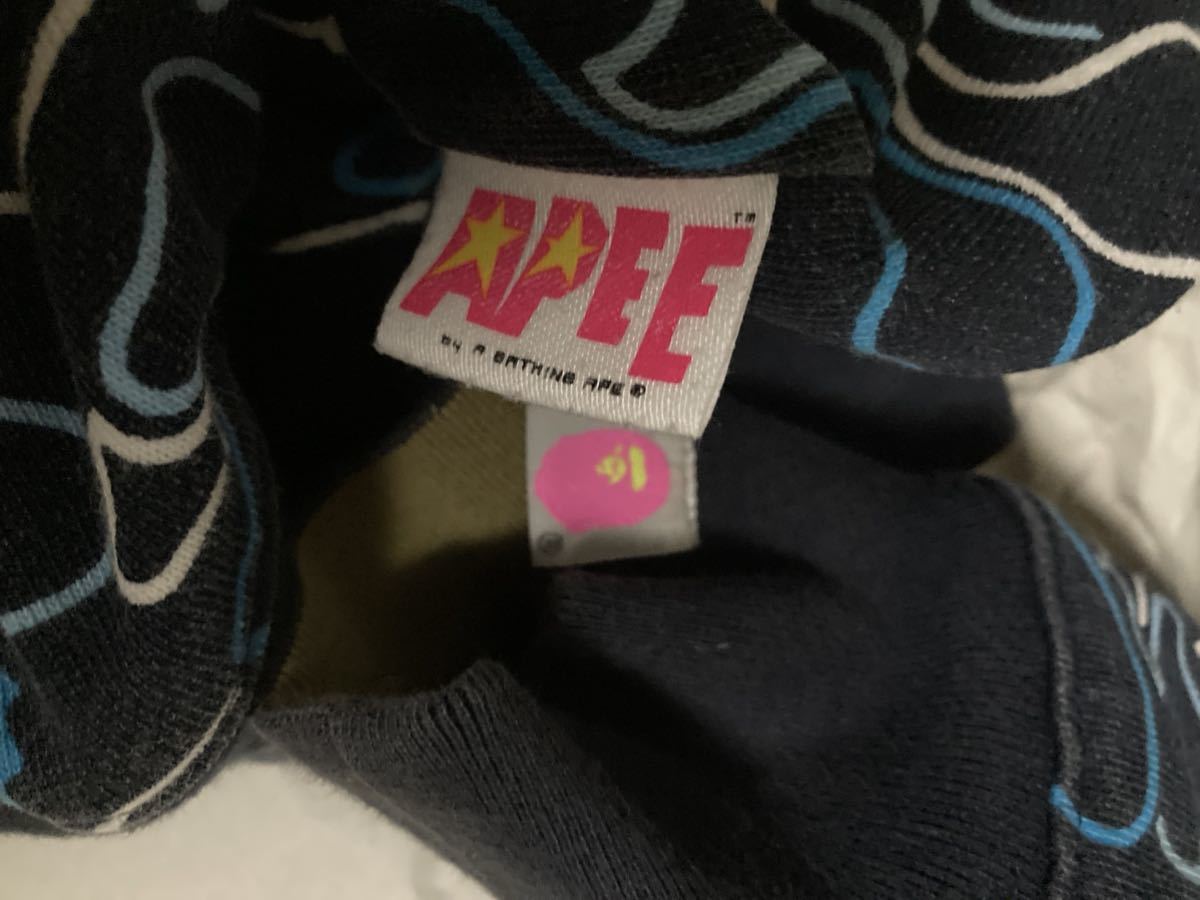 APEのレディースAPEEの1stカモネオンカモ リバーシブル4面スウェットです。 ※正規店購入、USED 。あまり着ていないので、当時のものとしては状態は良いです。当時APEのレディースライン APEE で発売。サイズはプライスタグに表記されていましたが、プライスタグは見つかりませんでした。サイズはメンズのXSとなります。レディースだとLくらいです。リバーシブルで4面仕様、しっかりした作りになっています。色は1stカモカーキのBAPE STAとAPEEロゴ、ネオンカモの水色x黒でAPE猿とAPEE STA で、4面楽しめる仕様です。※神経質な方はご遠慮下さい。ノークレーム・ノーリターンでお願いします。日本国内のみの発送対応となります。