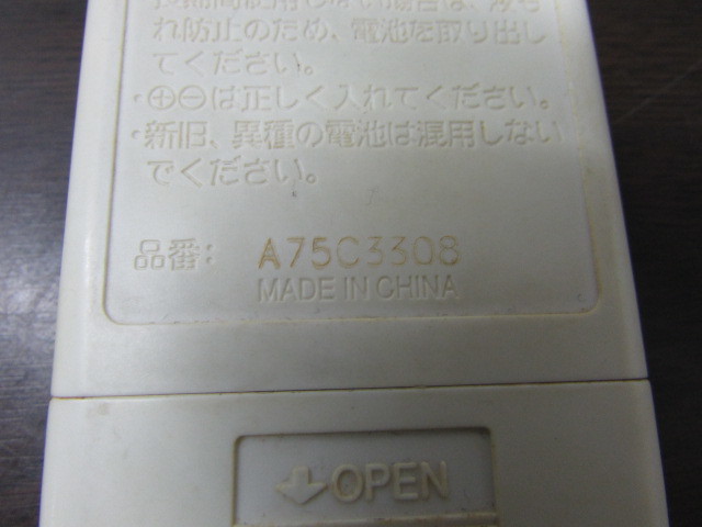 【YHA0245】★Panasonic エアコンリモコン A75C3308 ツメ割れ 通電確認済み★中古