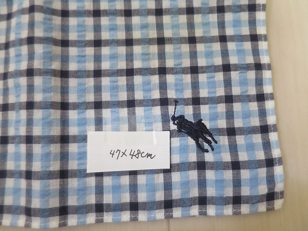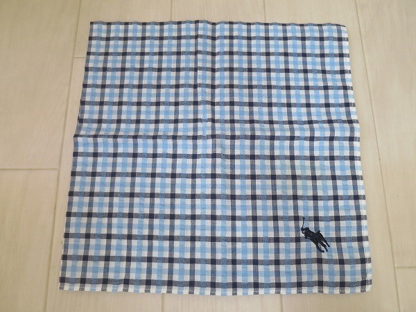 未使用タグ付 ラルフローレンハンカチ 水色チェック系