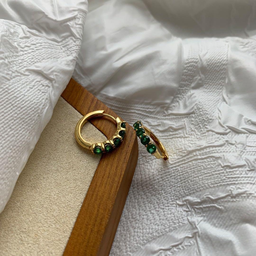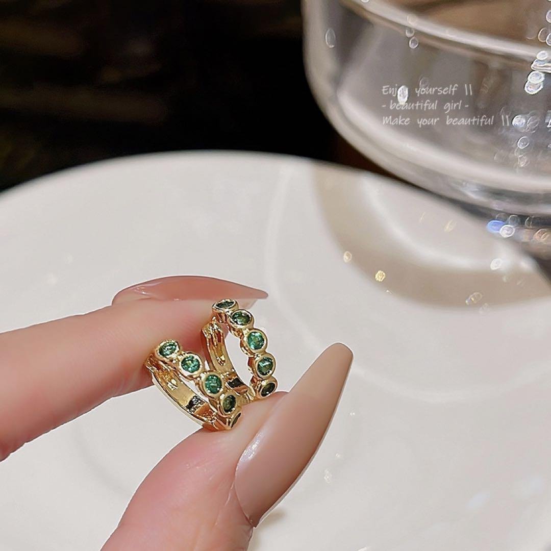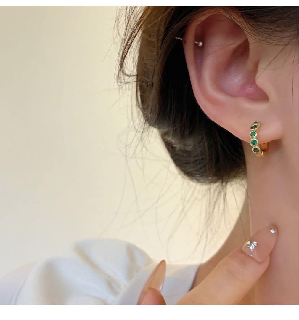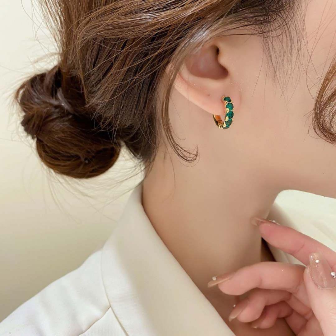 新品 フープピアス 緑 5連ラインストーンピアス レディースピアス シルバー925 ピアス アレルギー対応 ins風