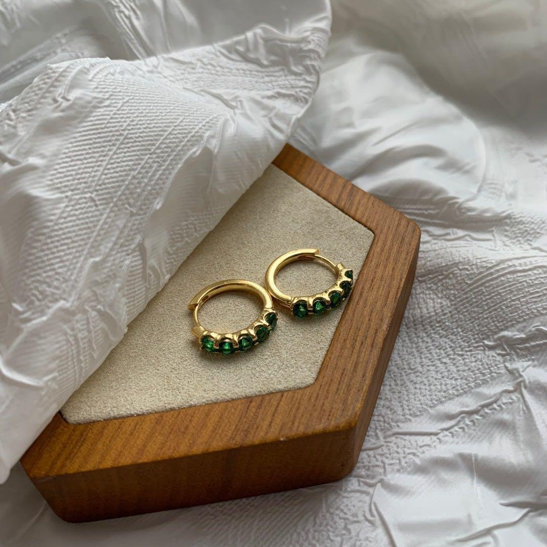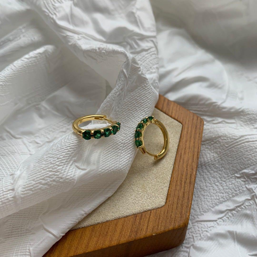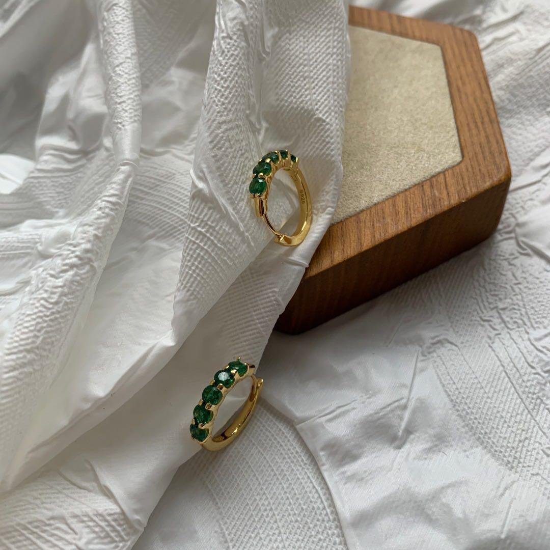 新品 フープピアス 緑 5連ラインストーンピアス レディースピアス シルバー925 ピアス アレルギー対応 ins風