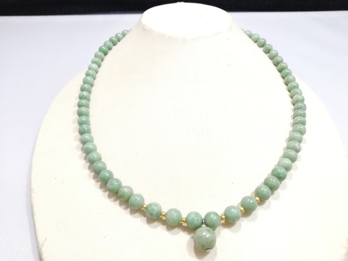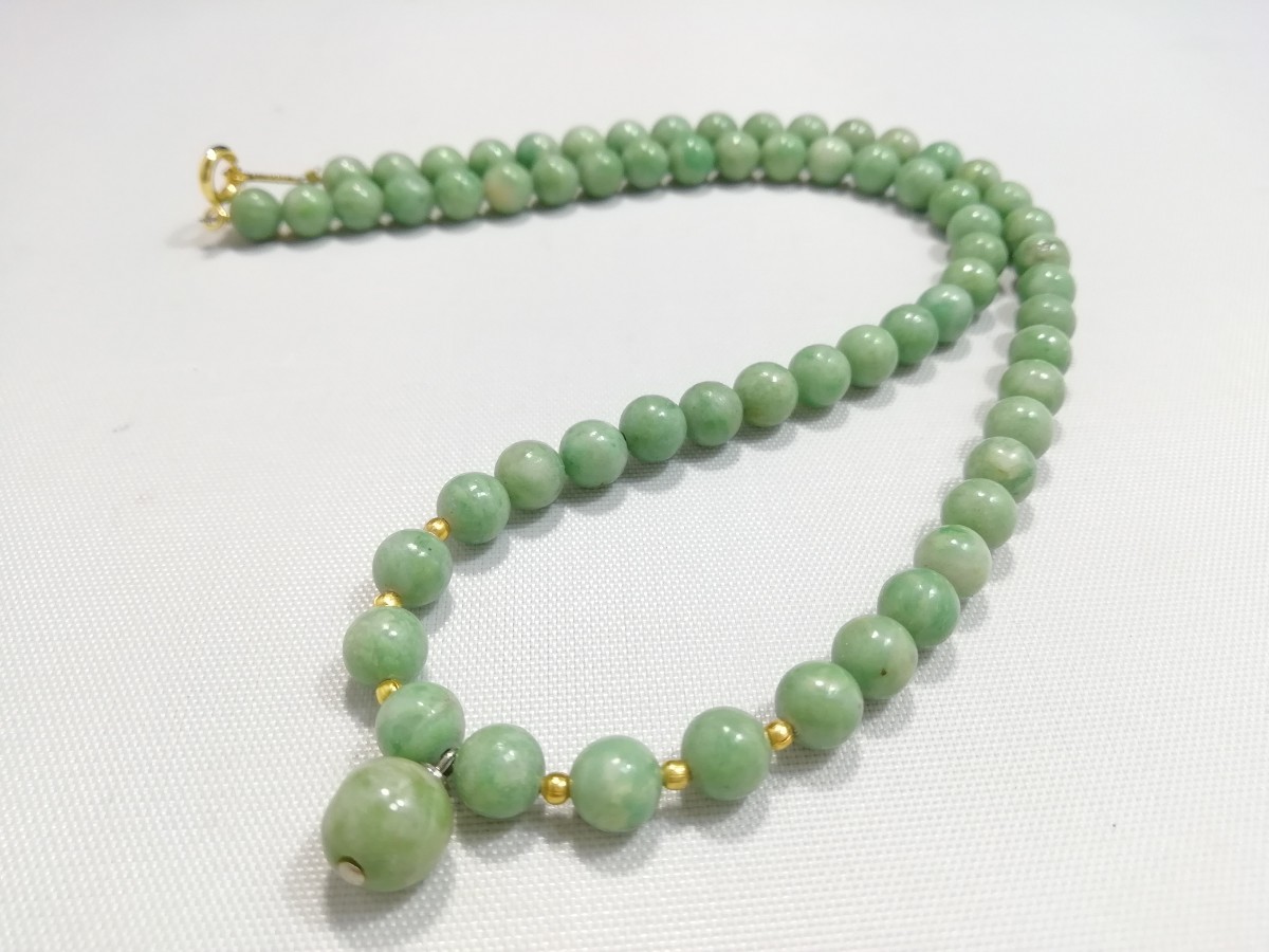 ミャンマー原産天然丸玉翡翠ペンダントネックレス