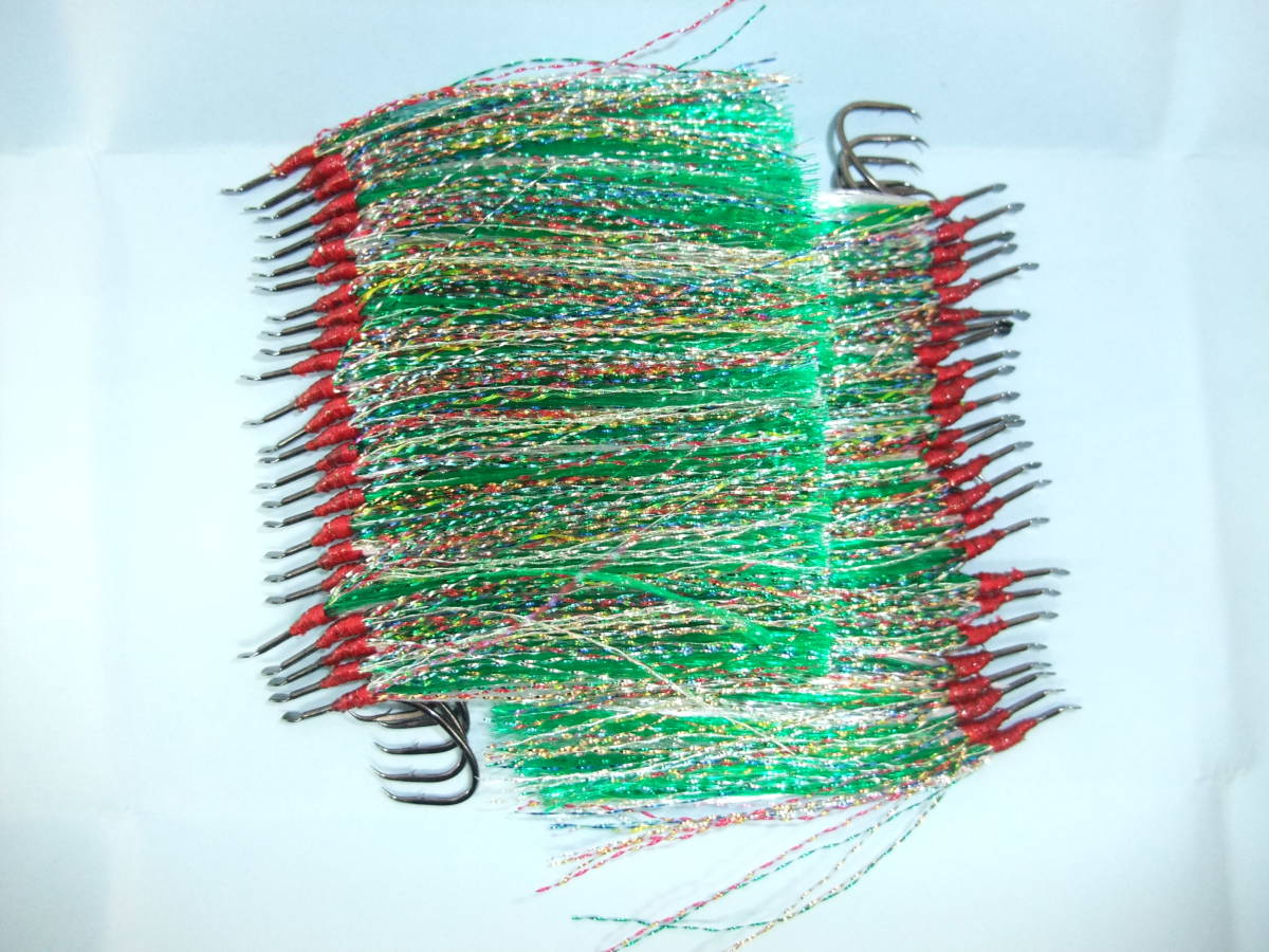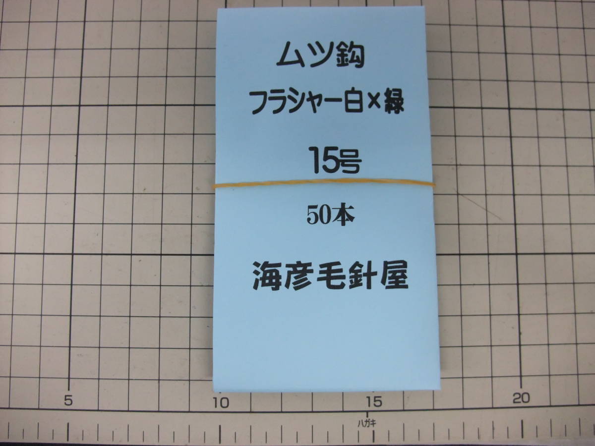 15SxM50 ムツ15号毛針 オキメバル フラッシャー2色( 白ケイムラ×緑)50本入れ 1セット