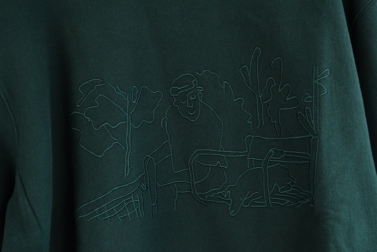 特徴: がっしりしたスウェット生地で刺繍のさりげないデザインがポイントです。